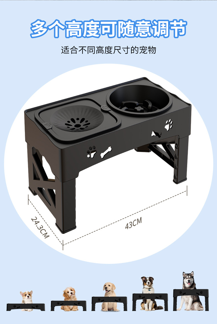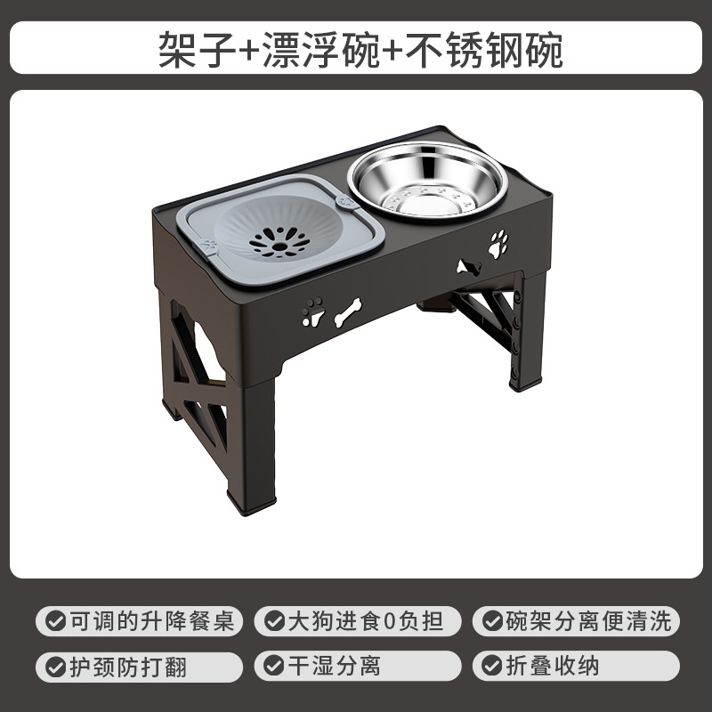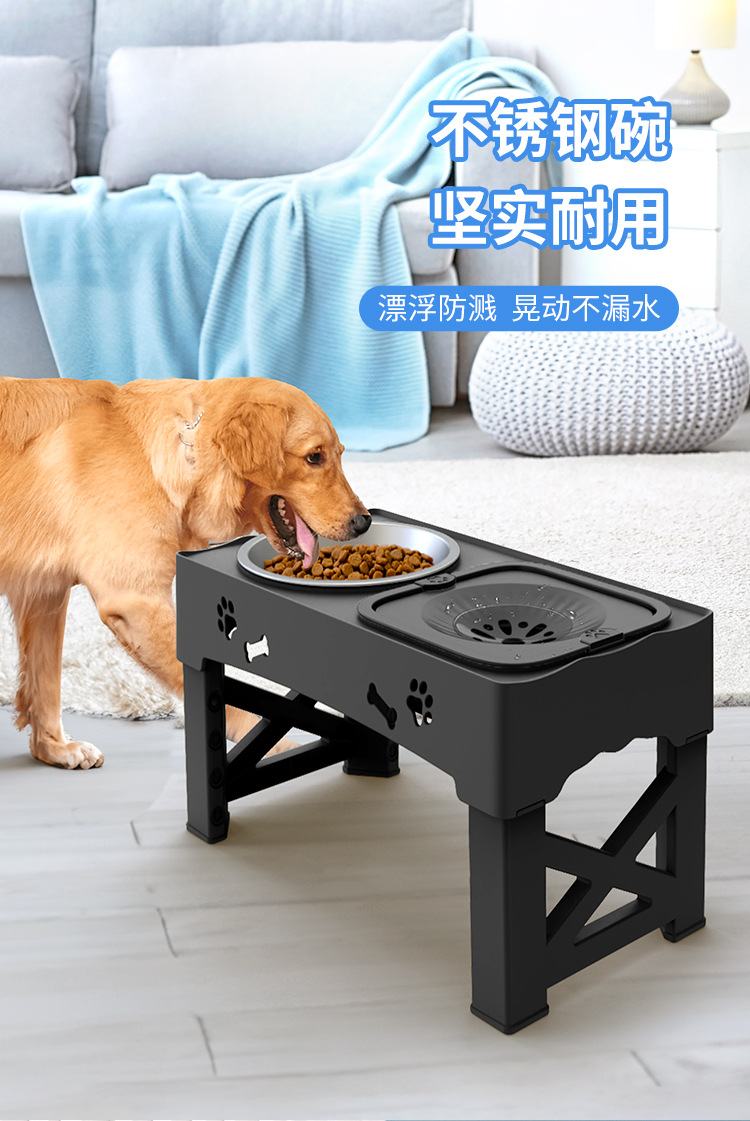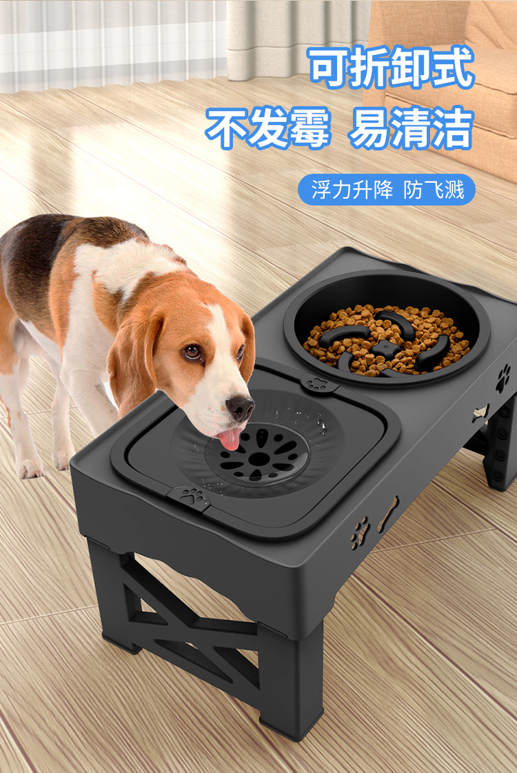 애완 동물 스테인레스 스틸 피더 더블 보울 통합 리프팅 안티 노크 높은 발 목 가드 느린 식품 그릇 애완 동물 개 그릇 도매스토어 가기