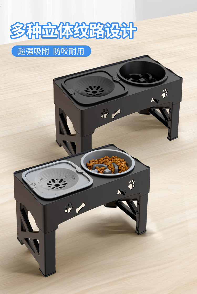 애완 동물 스테인레스 스틸 피더 더블 보울 통합 리프팅 안티 노크 높은 발 목 가드 느린 식품 그릇 애완 동물 개 그릇 도매