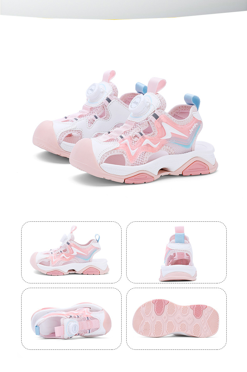 지프 소년 비치 샌들 2024 여름 새로운 미끄럼 방지 경량 소녀 신발 회전 버튼 폐쇄 발가락 패션 신발