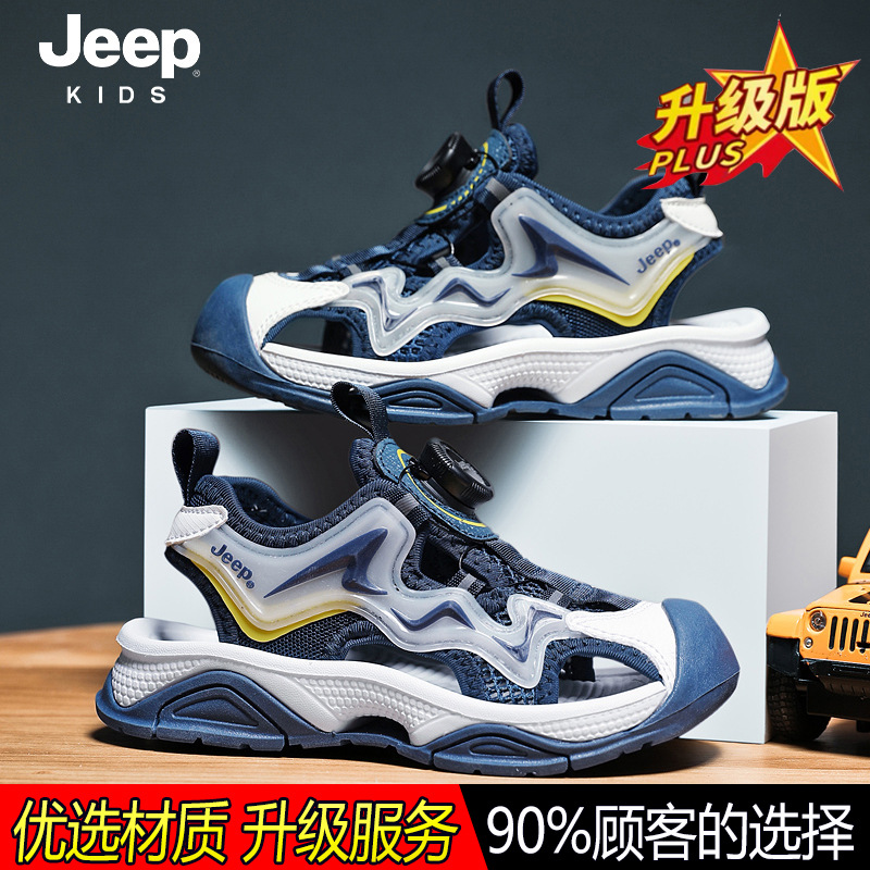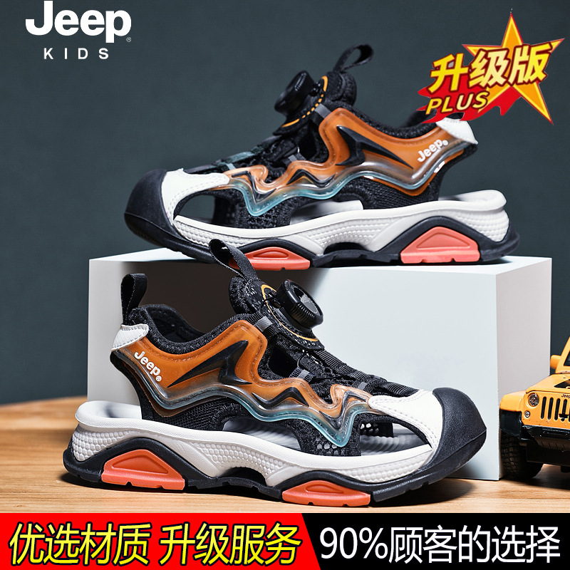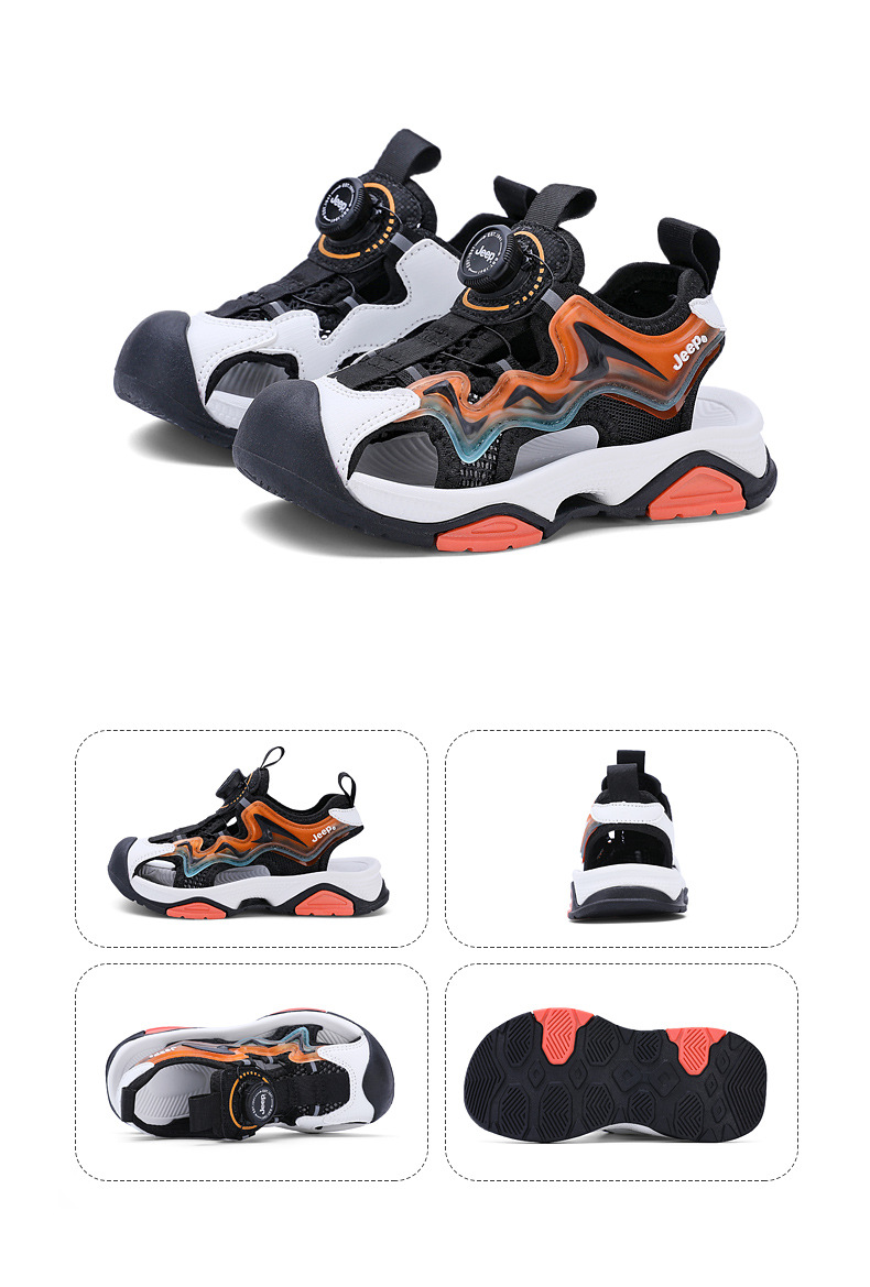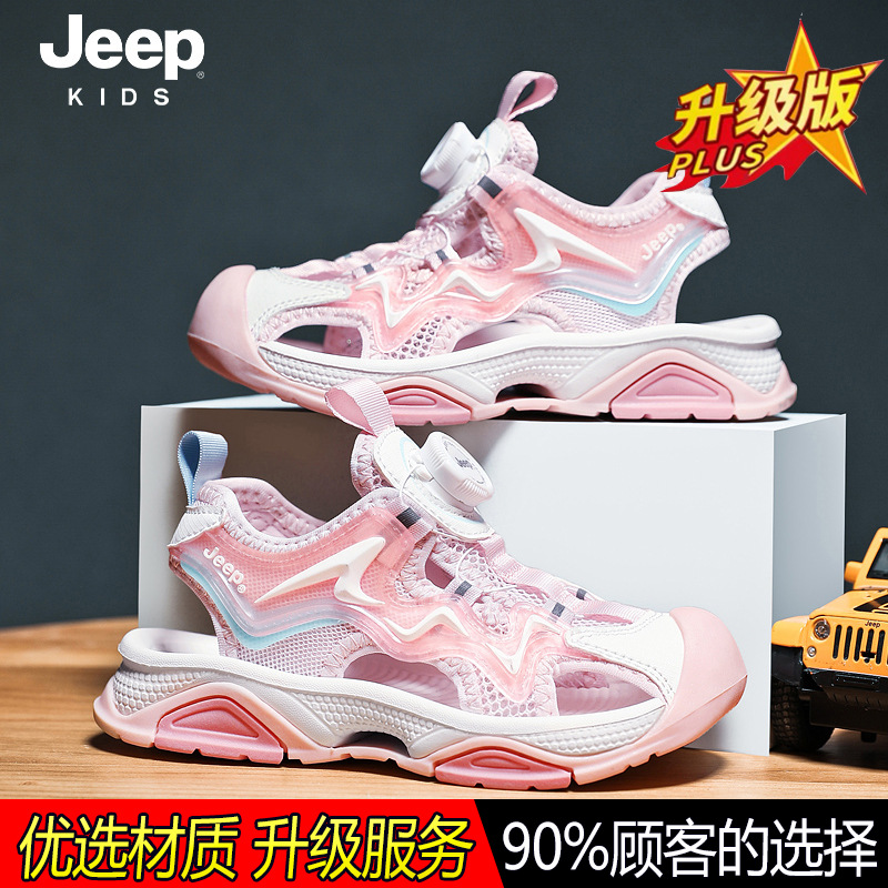 지프 소년 비치 샌들 2024 여름 새로운 미끄럼 방지 경량 소녀 신발 회전 버튼 폐쇄 발가락 패션 신발스토어 가기