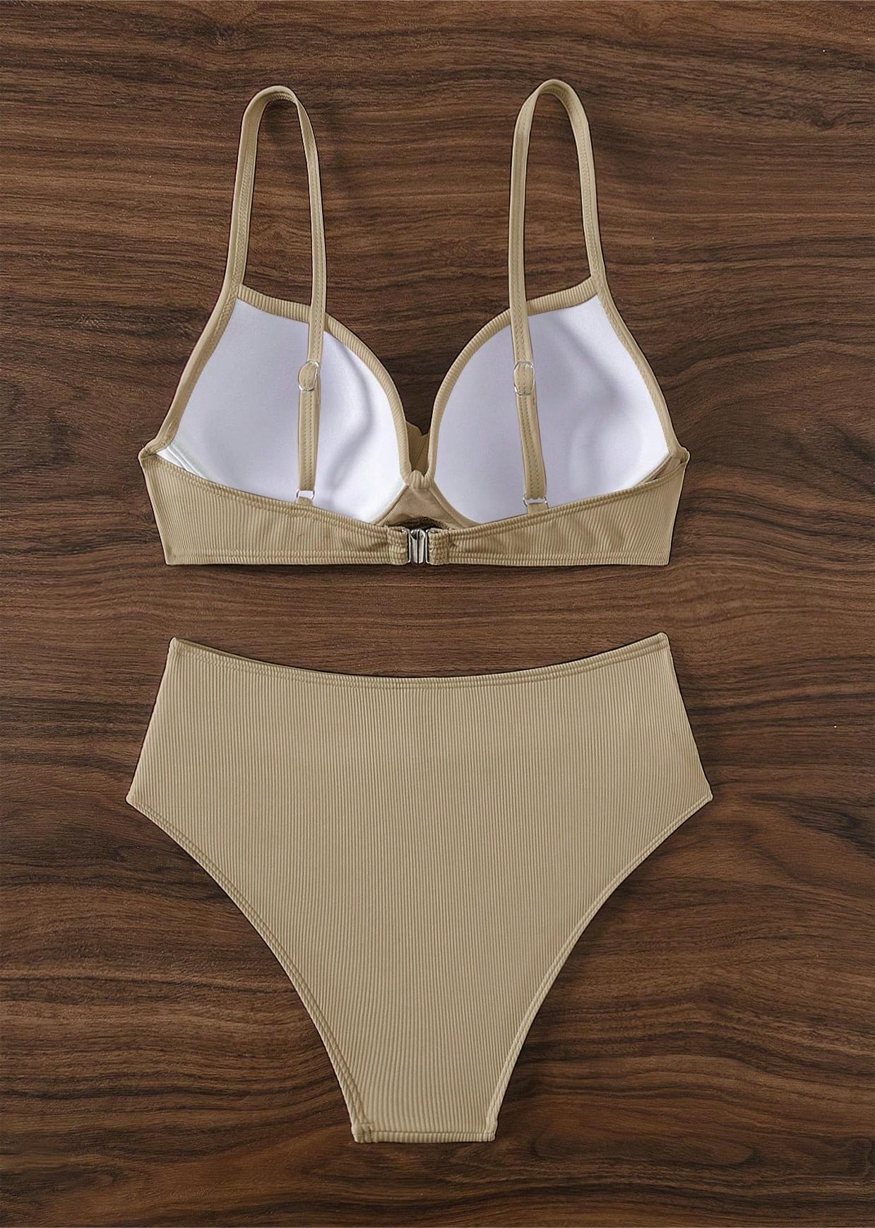 비키니 2024 새로운 솔리드 컬러 스틸 브라서 하이 엔드 비키니 여성 하이 허리 비치 유럽과 미국 아마존 수영복