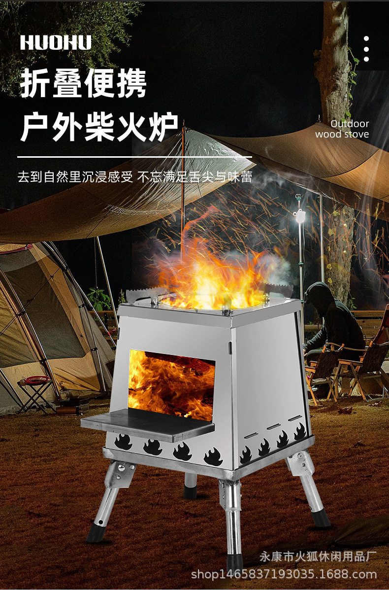 접이식 스토브 헤드, 휴대용 무연 장작 난로, 스테인레스 스틸 스토브, 자율 주행 캠핑 바베큐 캠핑 카드형 야외 스토브스토어 가기