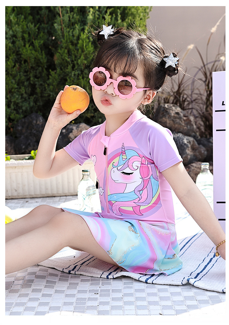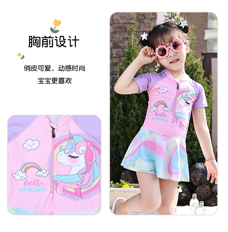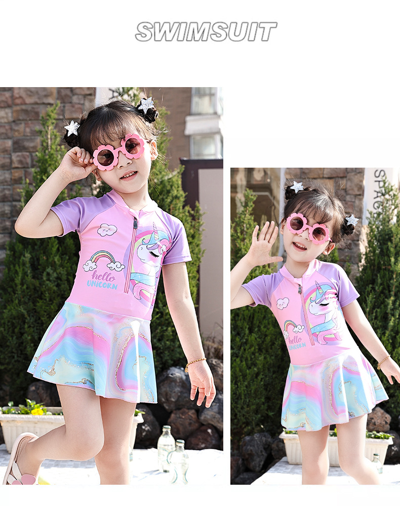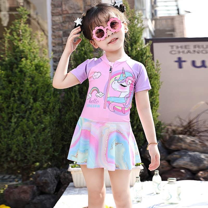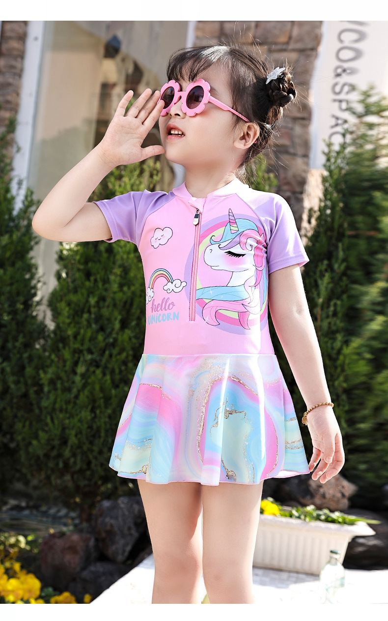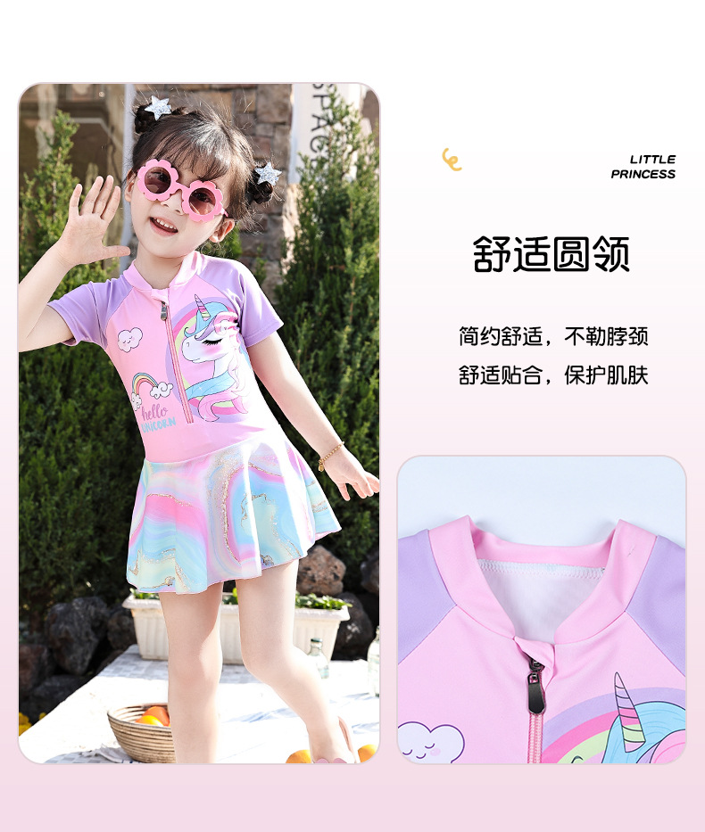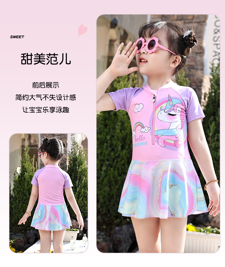 어린이 수영복 어린 소녀 2024 새로운 원피스 원피스 지퍼 달콤한 공주 스타일 전문 여행스토어 가기