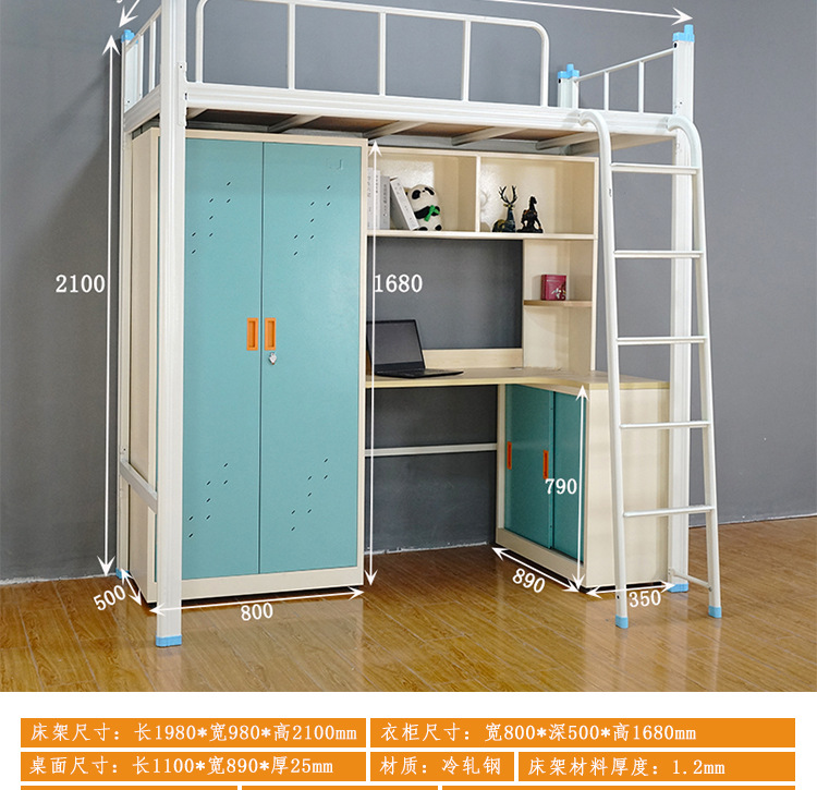 침대 테이블 기숙사 직원 싱글 아파트 침대 학생 철제 침대 옷장 책꽂이 더블 레이어 통합 침대