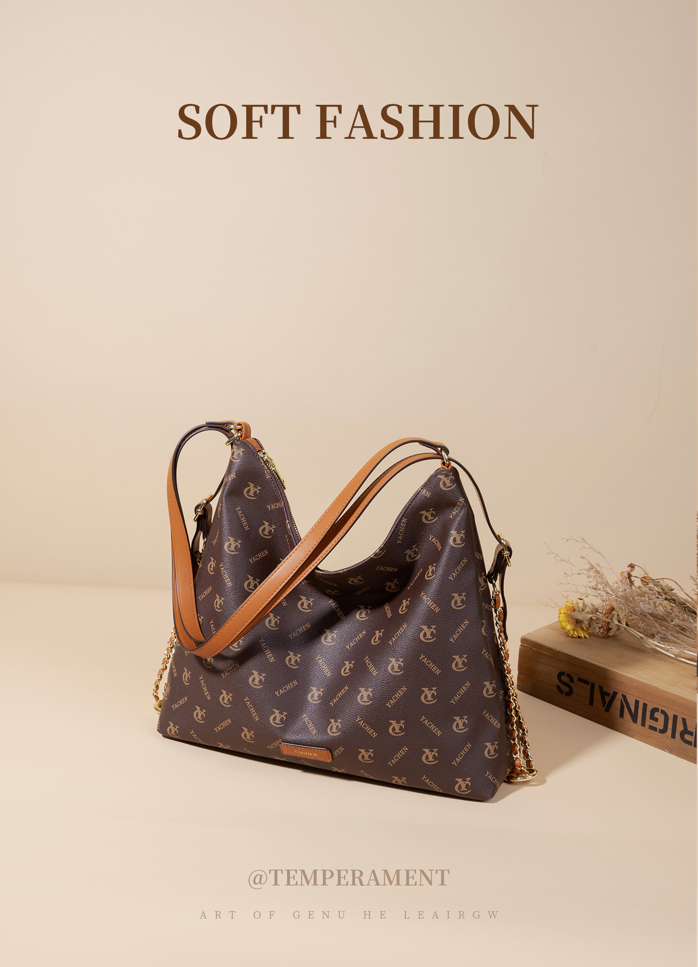 2024 새로운 스타일 정품 가죽 대용량 크로스 바디 백 세련된 원 숄더 휴대용 질감 토트 백 가볍고 캐주얼하며 다용도스토어 가기