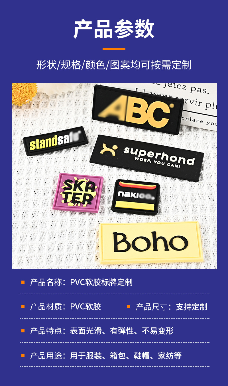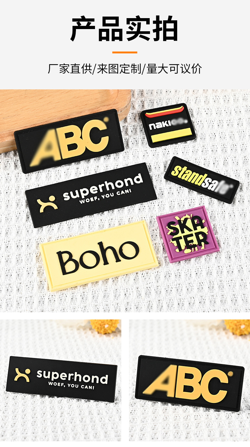 공장 의류 플라스틱 라벨 맞춤 제작 가방 액세서리 PVC 소프트 고무 라벨 실리콘 라벨 열전사 라벨 맞춤 도매