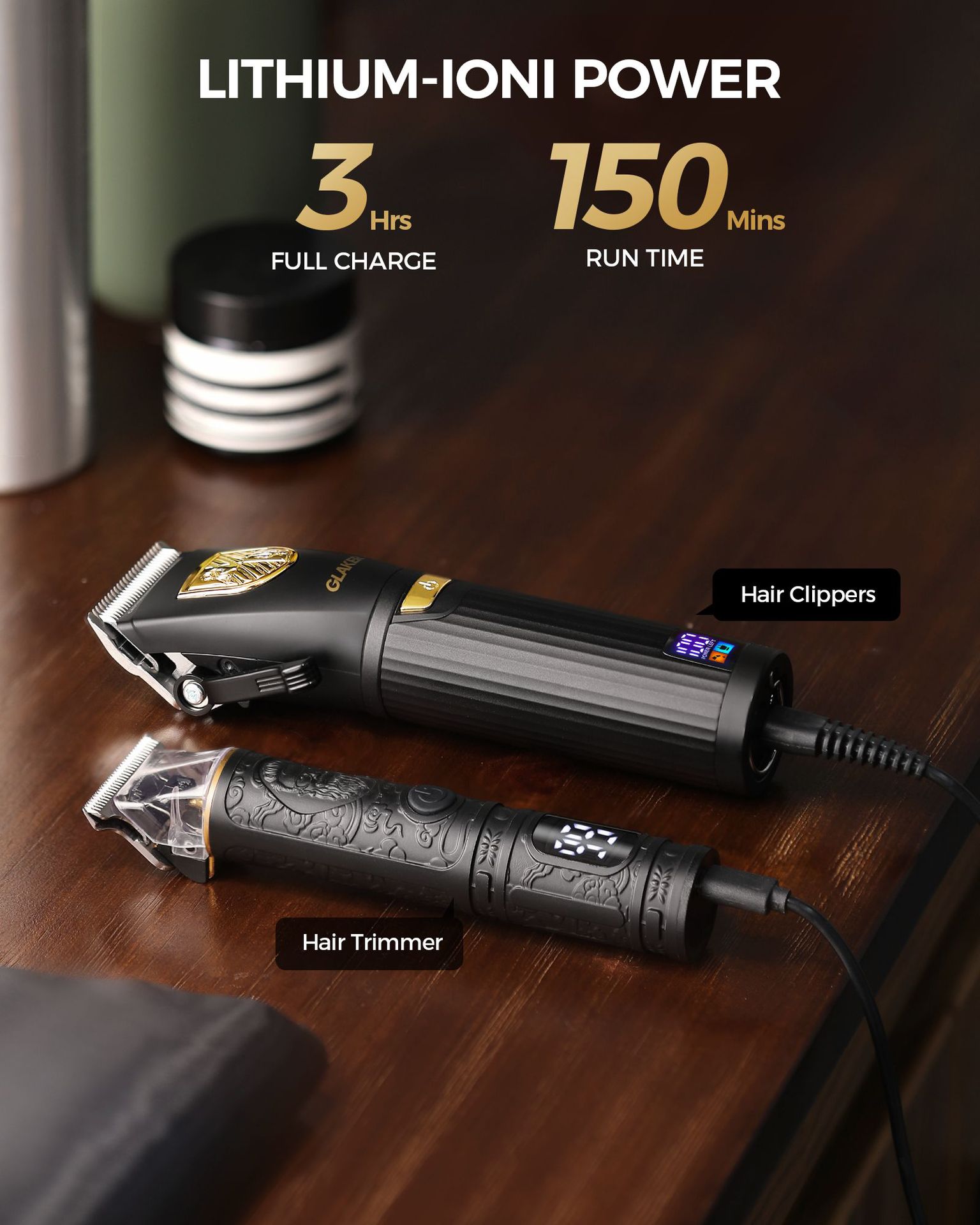 GLAKER 무선 이발사 가위 남성용 이발사 가위 및 LED 디스플레이가있는 트리머 세트, 15 개의 가이드 빗