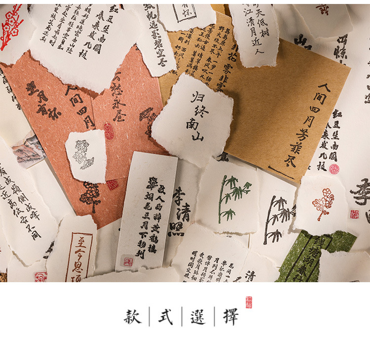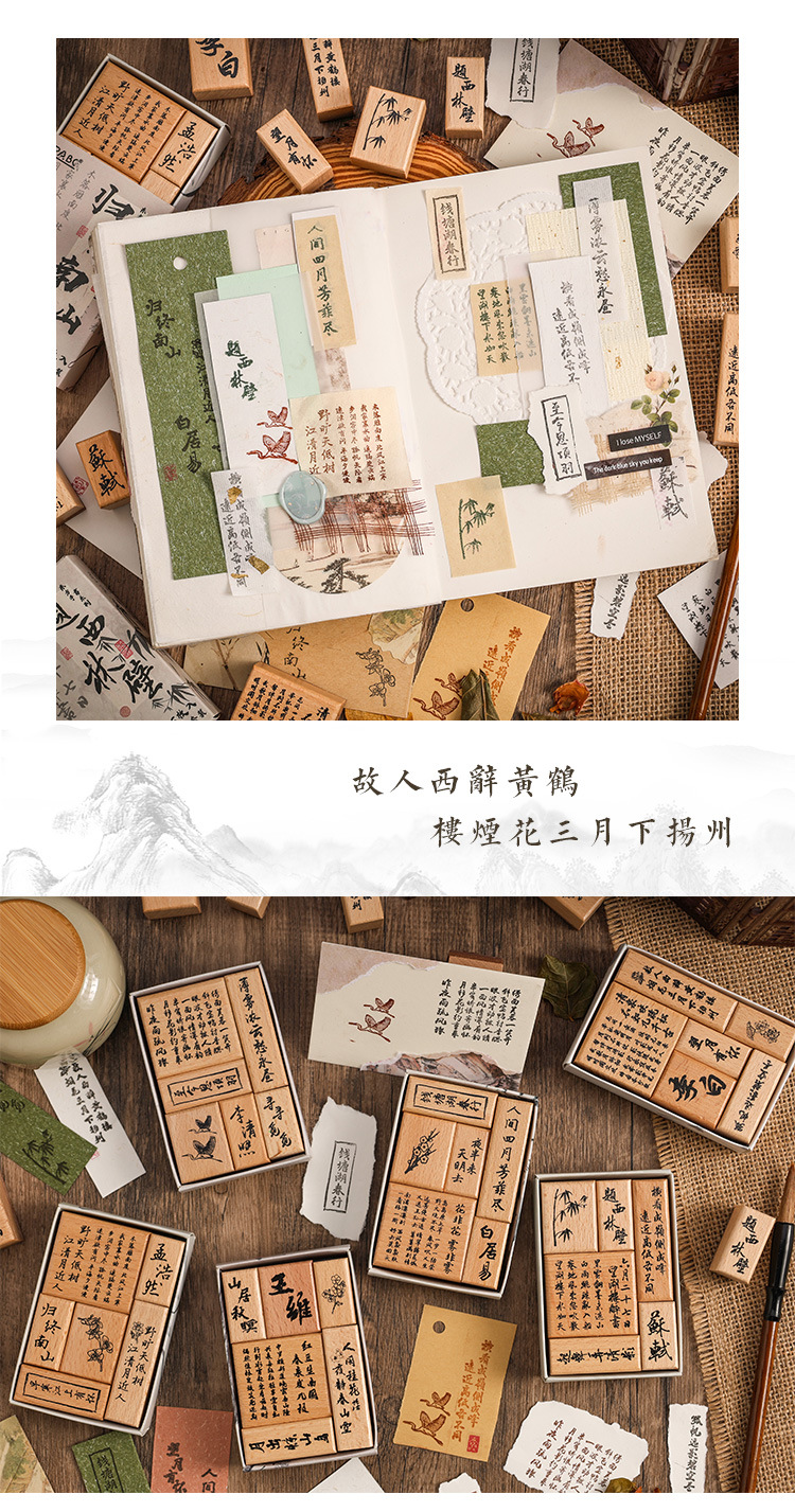 Yuezhen 동양 손 책 시리즈 고대 스타일 손 책 인감 중국 스타일 고대시 서예 나무 물개 손 책 자료