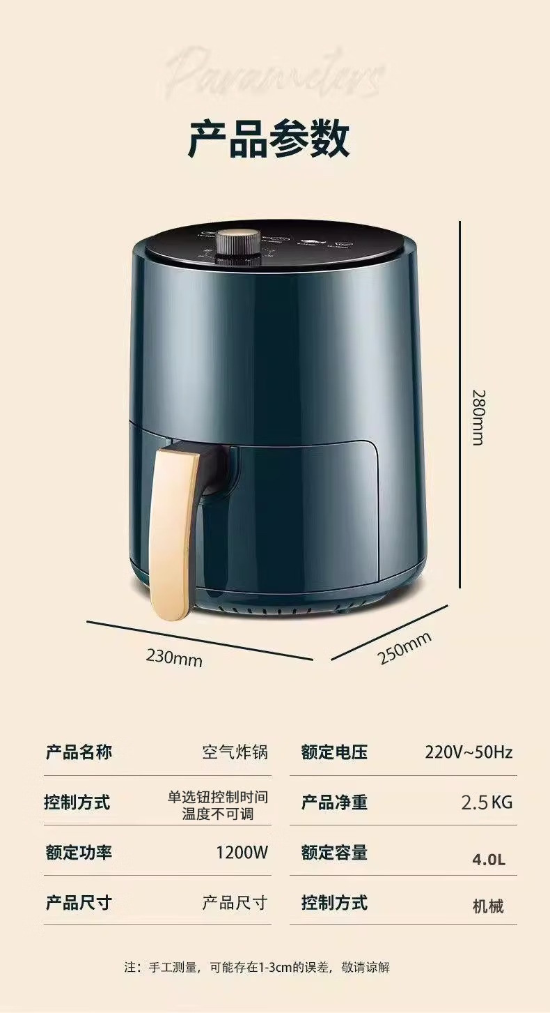 새로운 카멜 공기 프라이어 다기능 가정용 대용량 4L 전기 오븐 자동 지능형 프라이드 치킨 냄비 선물