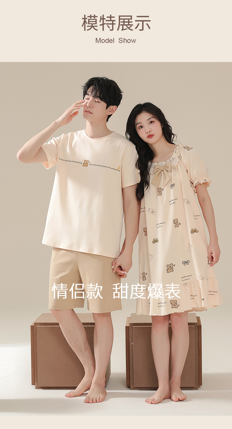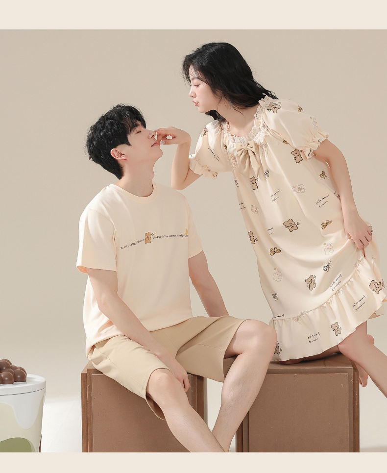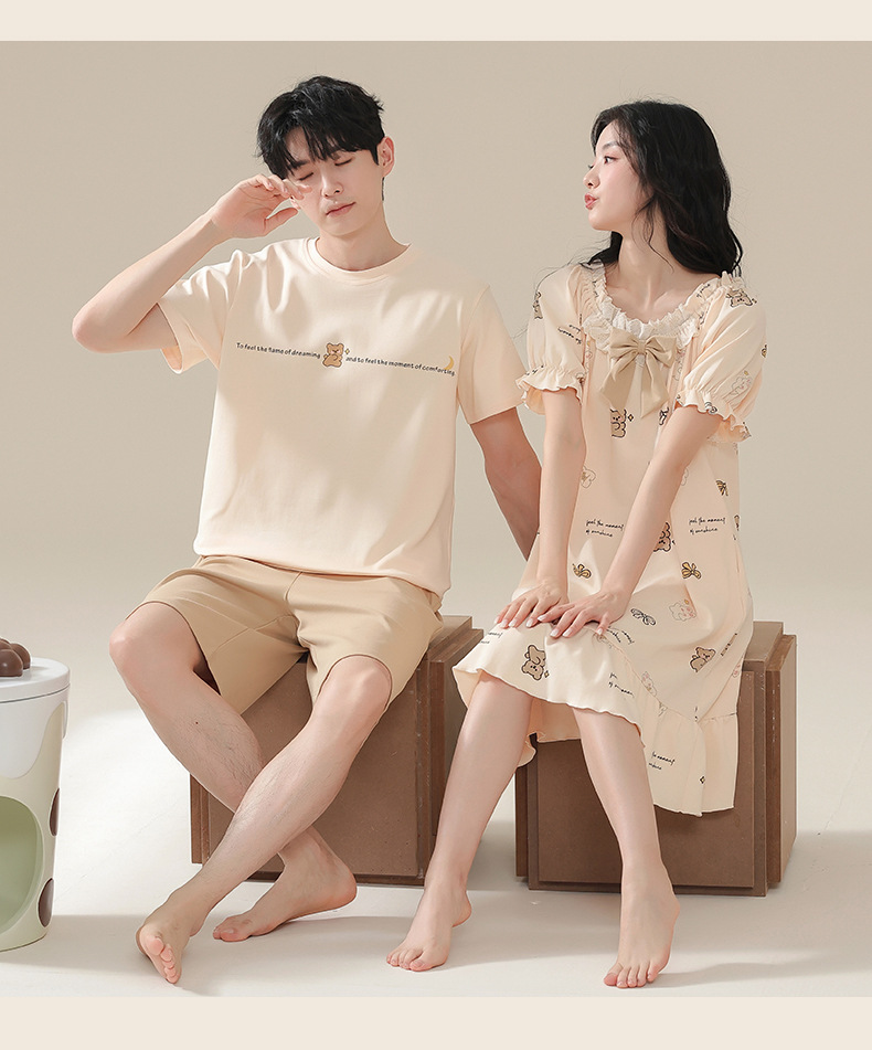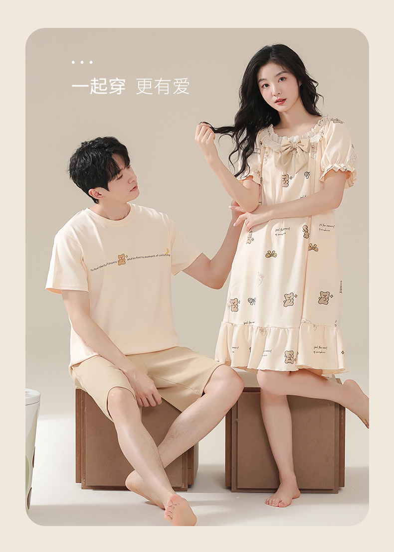 커플 잠옷 여름 2024 새로운 여성 여름 반팔 귀여운 여성 원피스 만화 겉옷 남성 홈웨어스토어 가기