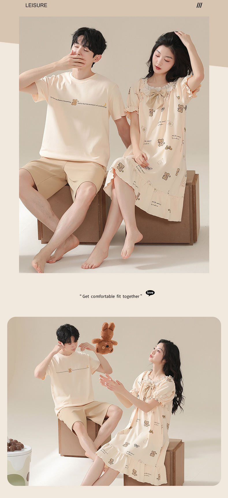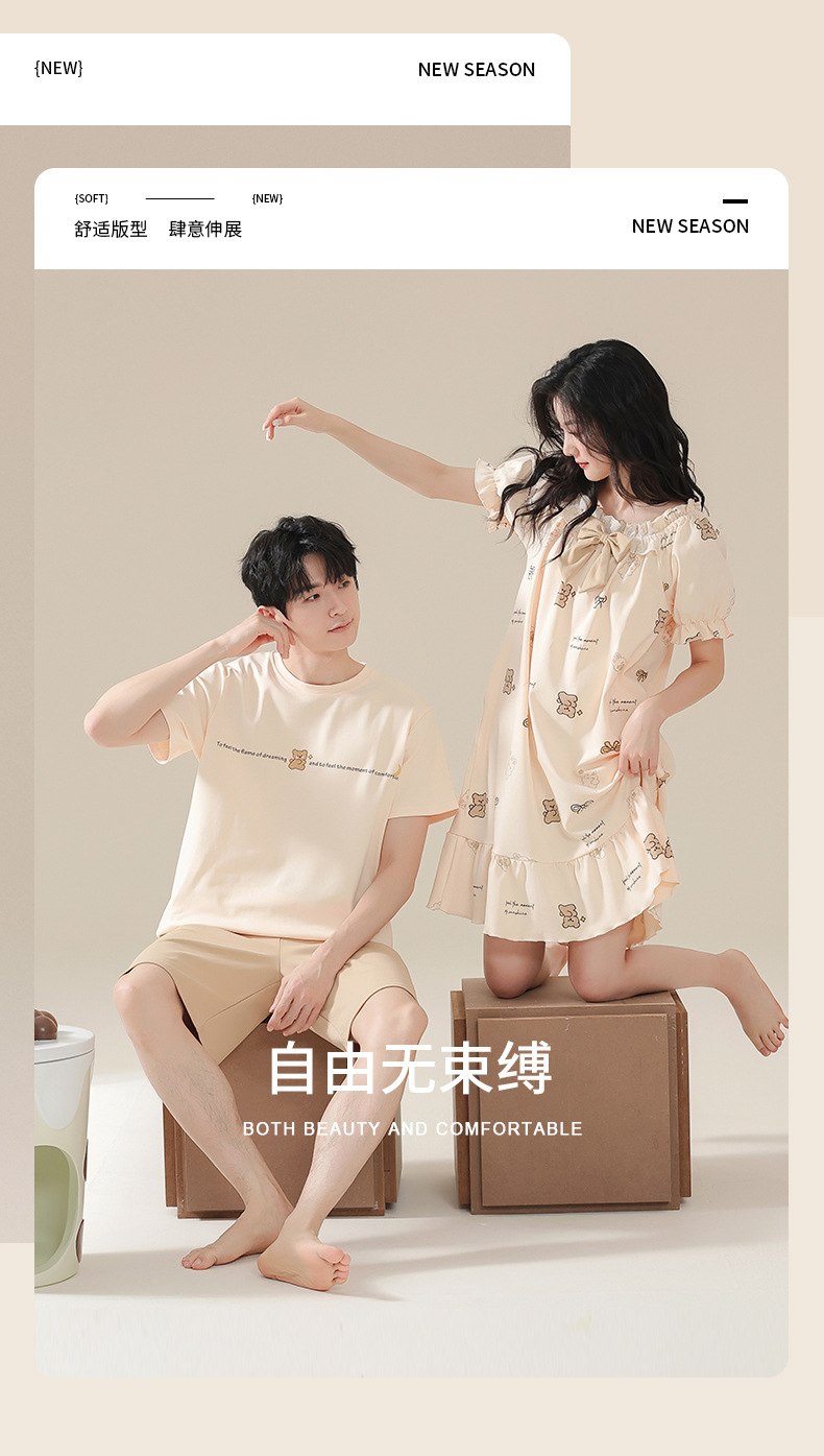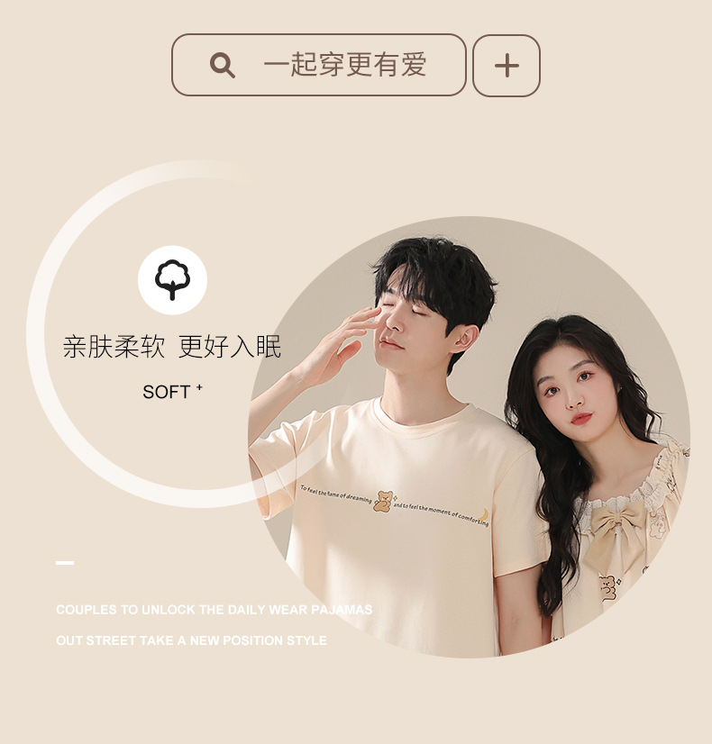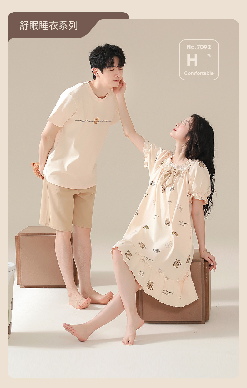 커플 잠옷 여름 2024 새로운 여성 여름 반팔 귀여운 여성 원피스 만화 겉옷 남성 홈웨어스토어 가기