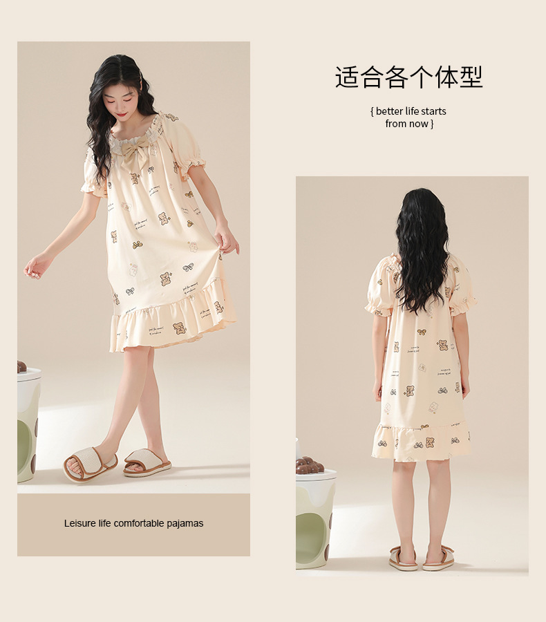 커플 잠옷 여름 2024 새로운 여성 여름 반팔 귀여운 여성 원피스 만화 겉옷 남성 홈웨어