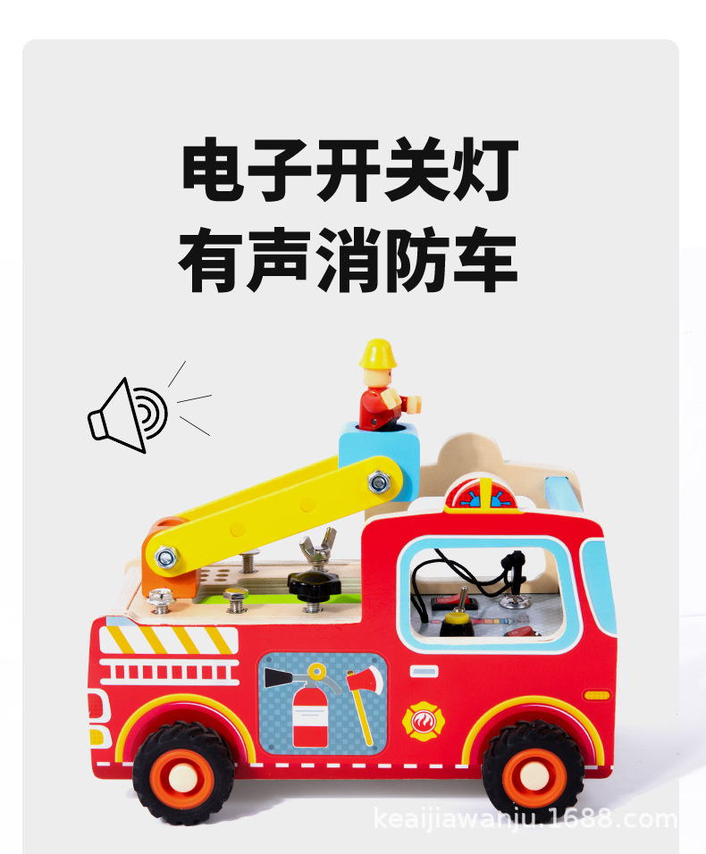 어린이 분리 가능한 너트 소방차 아기 교육 소리와 가벼운 바쁜 보드 시뮬레이션 전자 스위치 훈련 나무 장난감스토어 가기