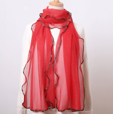 金丝围巾女长款荷叶边仿真丝巾网纱印花纯色时尚韩版网红同款围脖