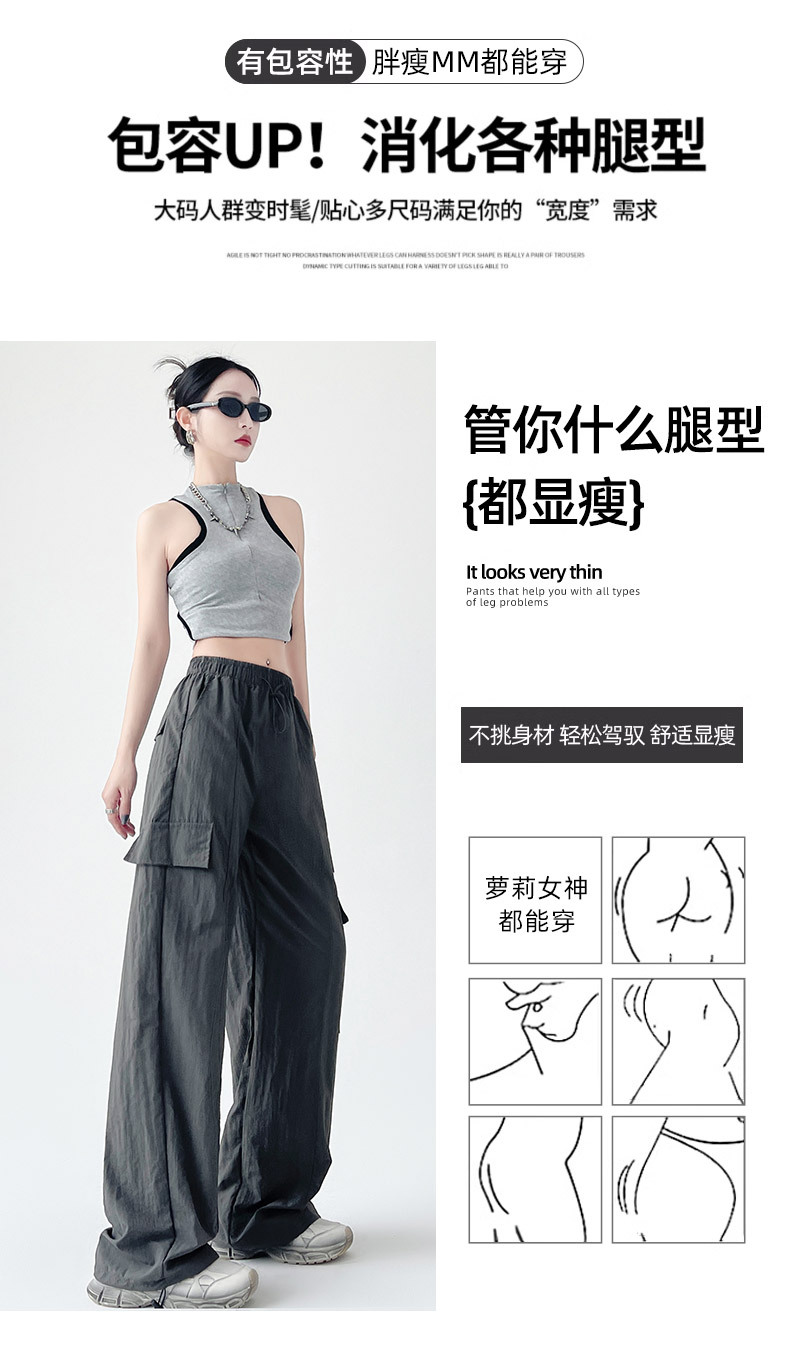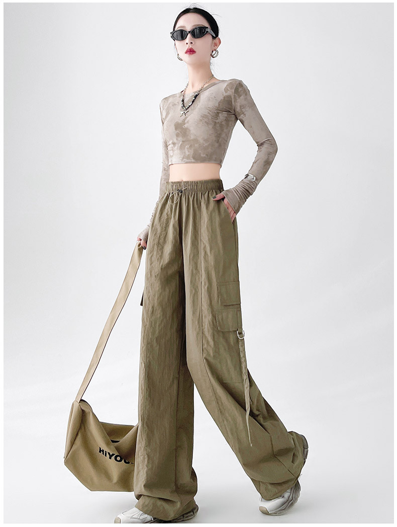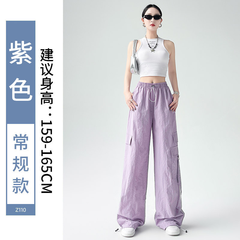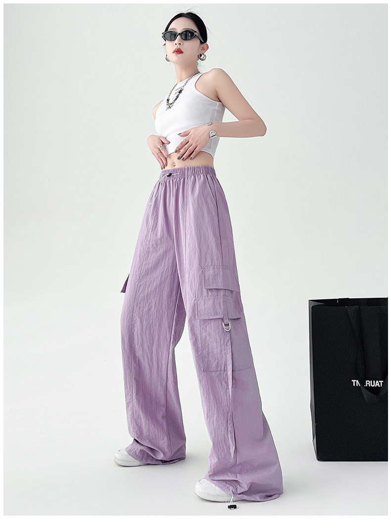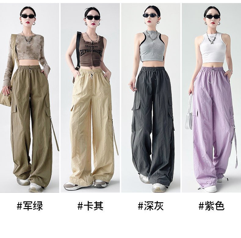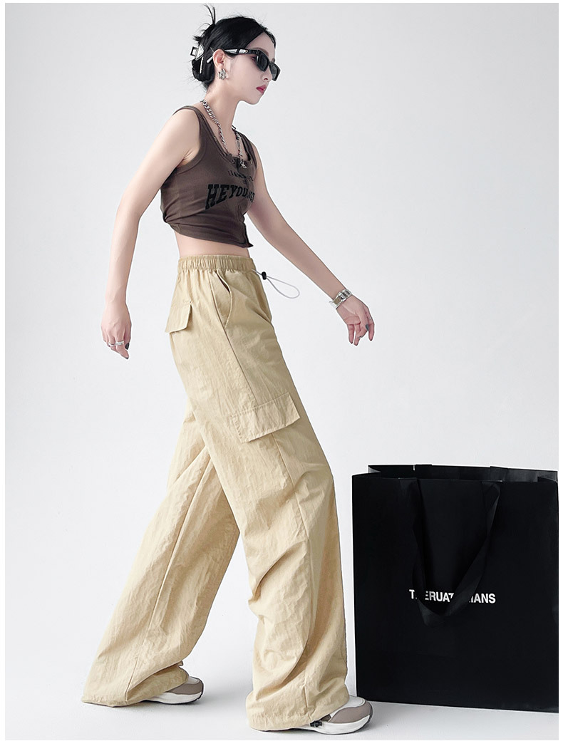 미국의 빠른 건조 작업복 여성의 봄 높은 허리 얇은 넓은 다리 하이킹 바지 느슨한 캐주얼 발목 묶인 하렘 스포츠 바지스토어 가기