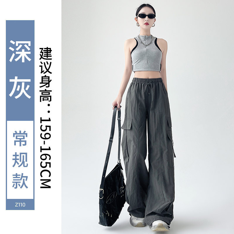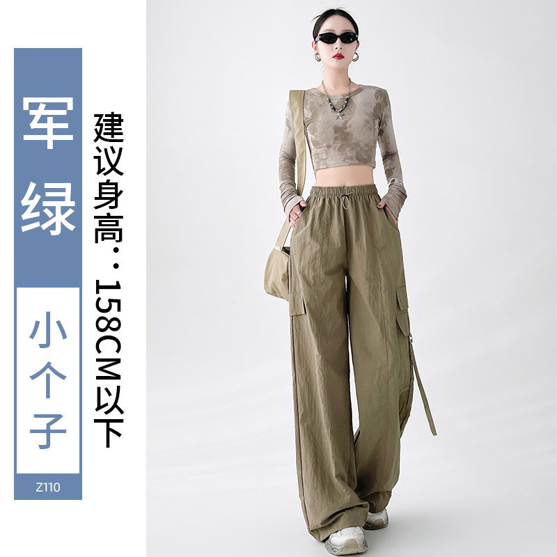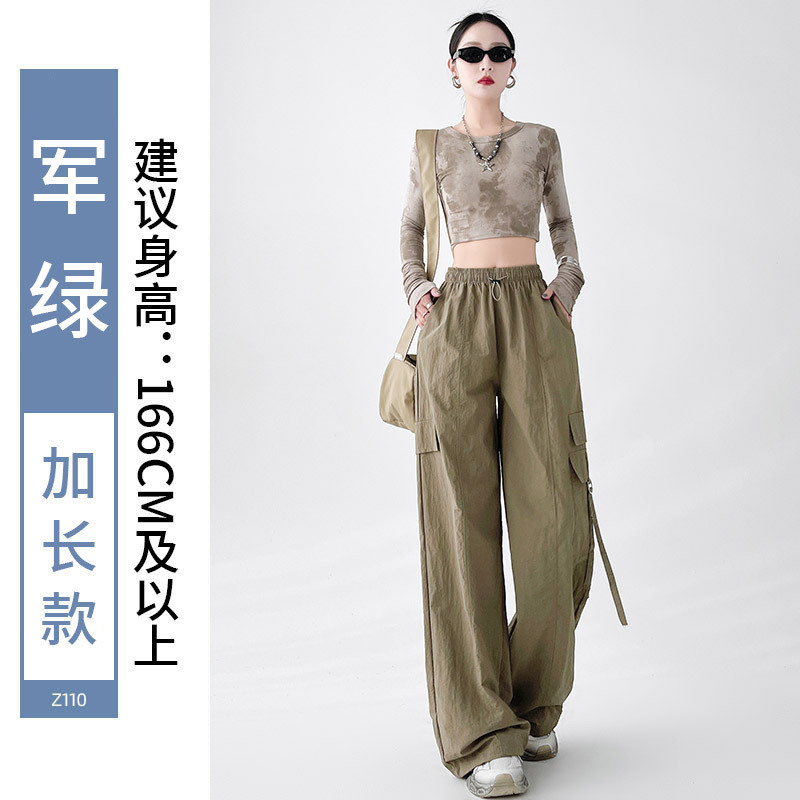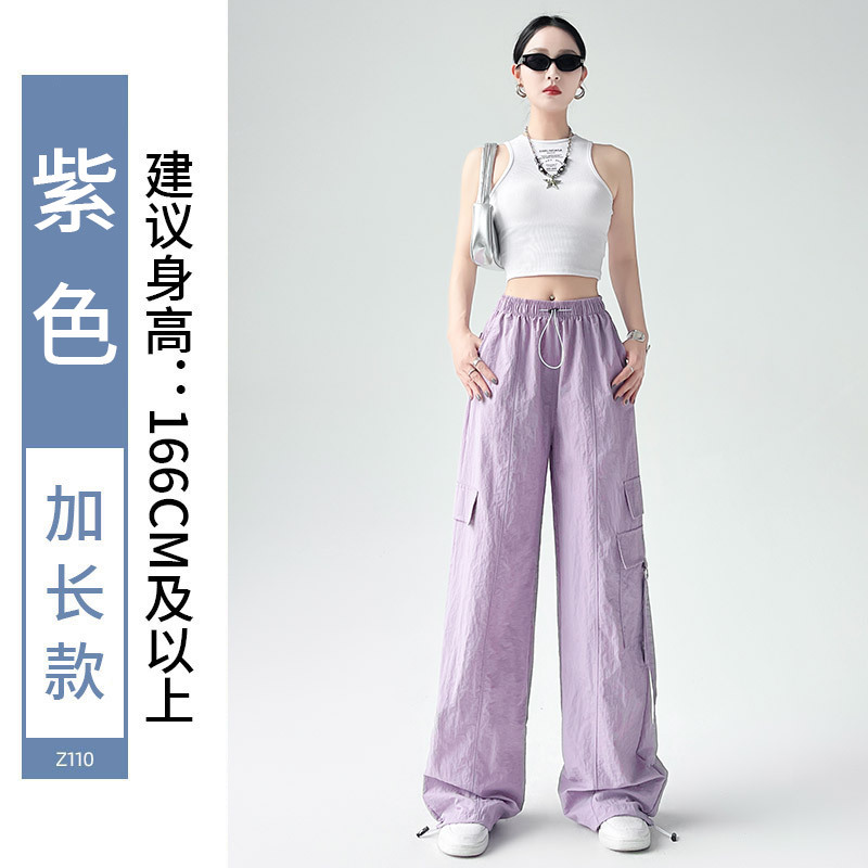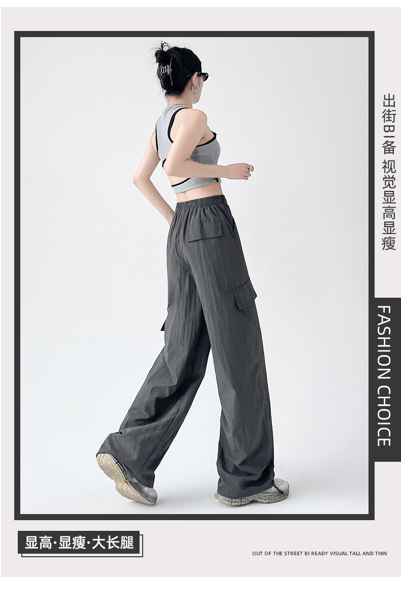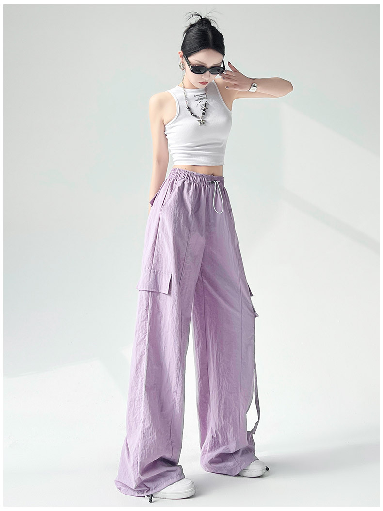 미국의 빠른 건조 작업복 여성의 봄 높은 허리 얇은 넓은 다리 하이킹 바지 느슨한 캐주얼 발목 묶인 하렘 스포츠 바지스토어 가기