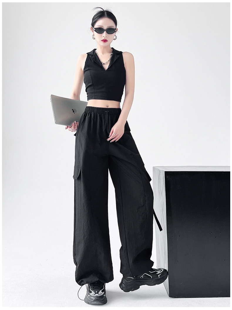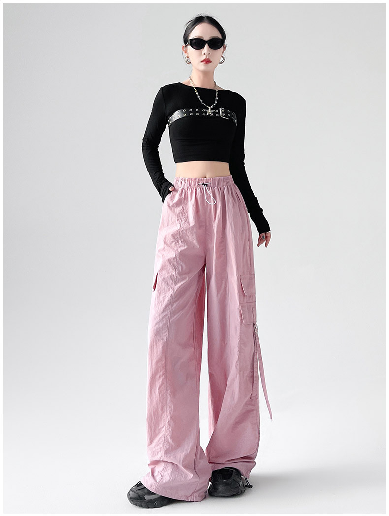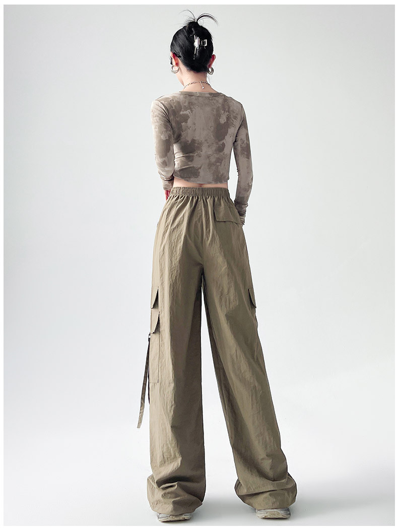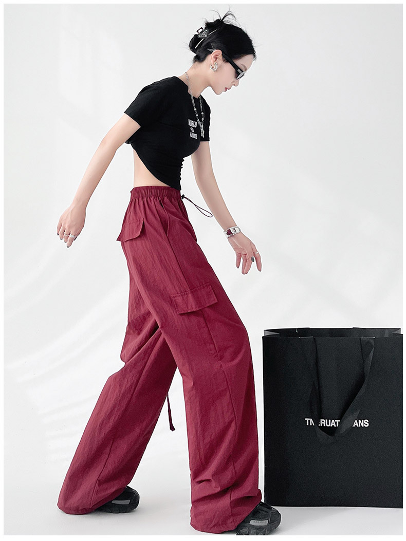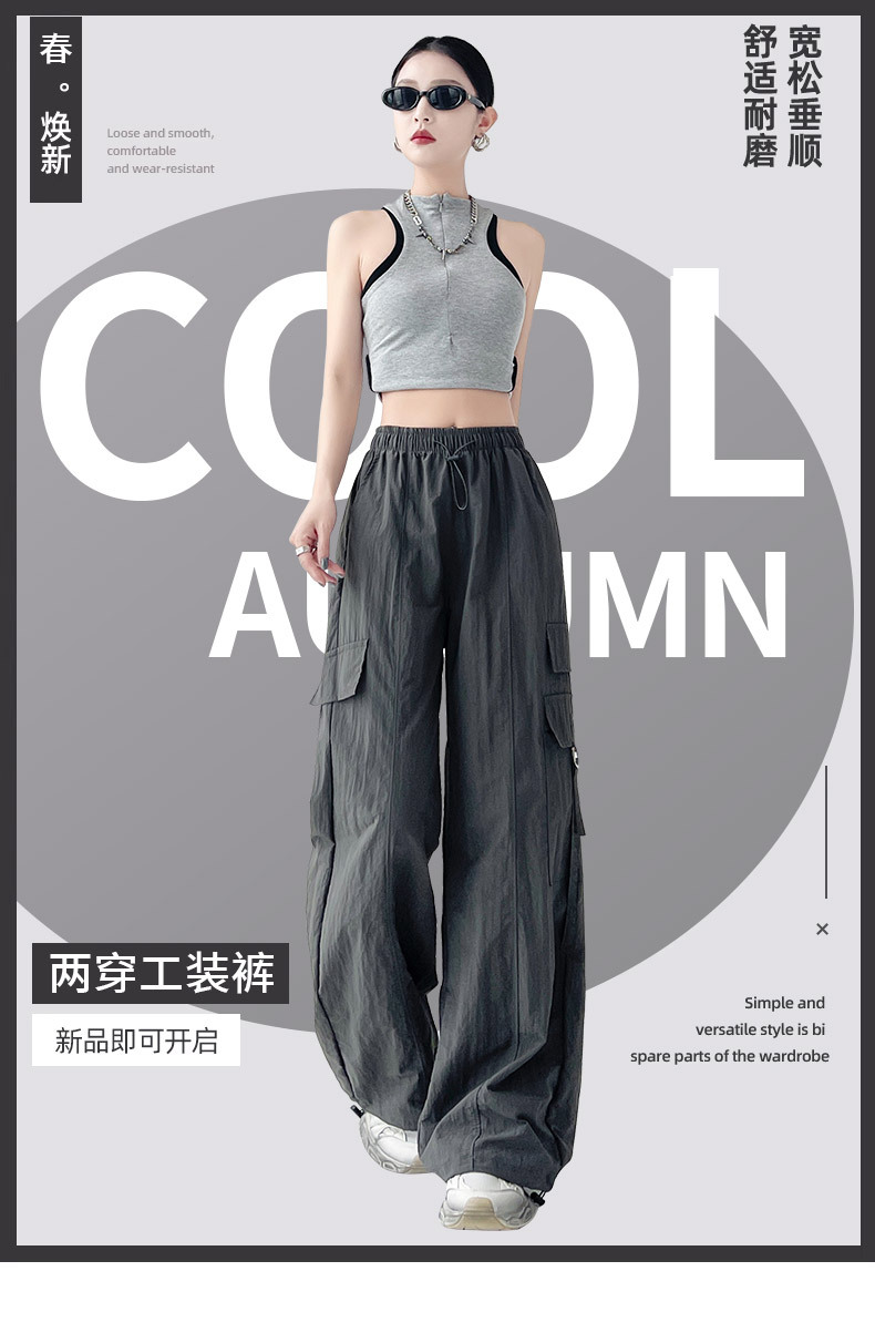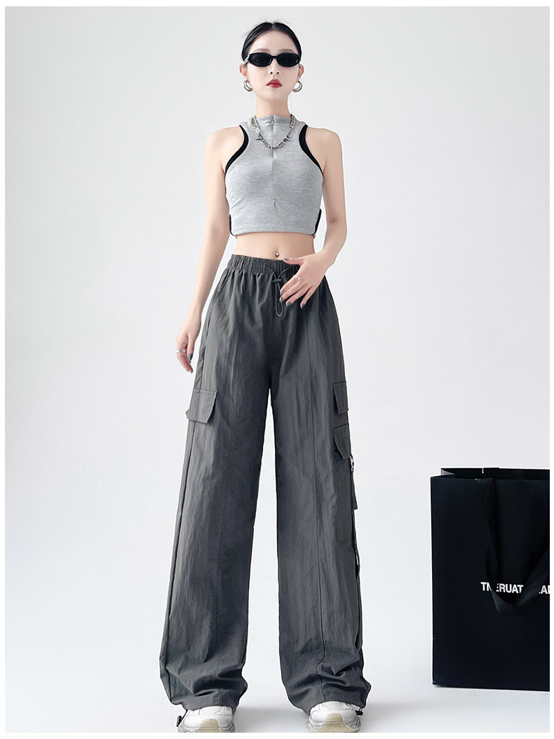 미국의 빠른 건조 작업복 여성의 봄 높은 허리 얇은 넓은 다리 하이킹 바지 느슨한 캐주얼 발목 묶인 하렘 스포츠 바지스토어 가기