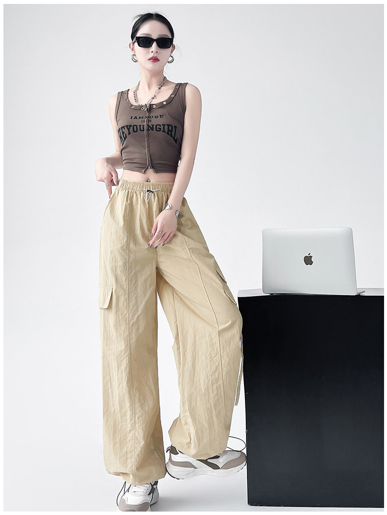 미국의 빠른 건조 작업복 여성의 봄 높은 허리 얇은 넓은 다리 하이킹 바지 느슨한 캐주얼 발목 묶인 하렘 스포츠 바지