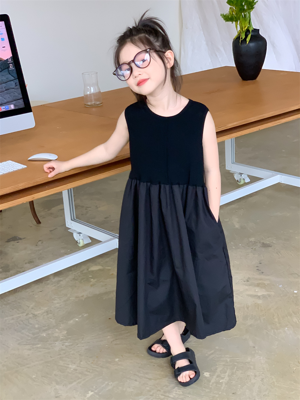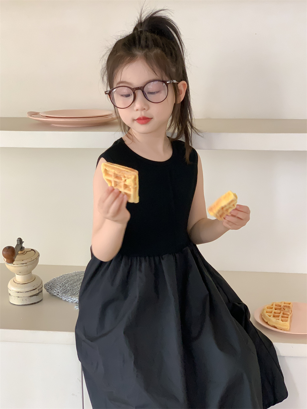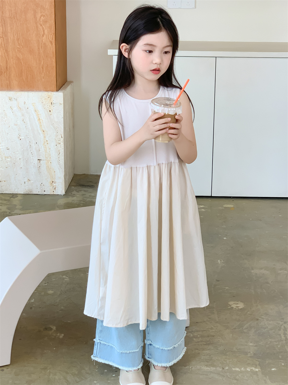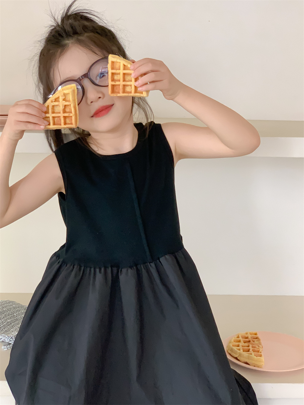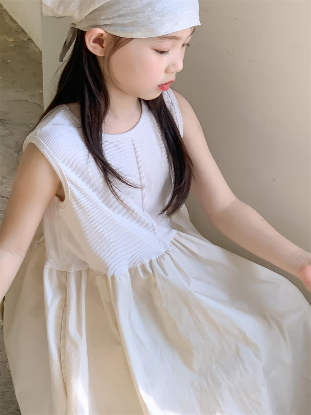 꽃과 소녀를 찾는 어린이 여름 원피스 원피스 어린 소녀 상쾌한 한국 니트 스티칭 조끼 치마 아기 소녀 여름 치마