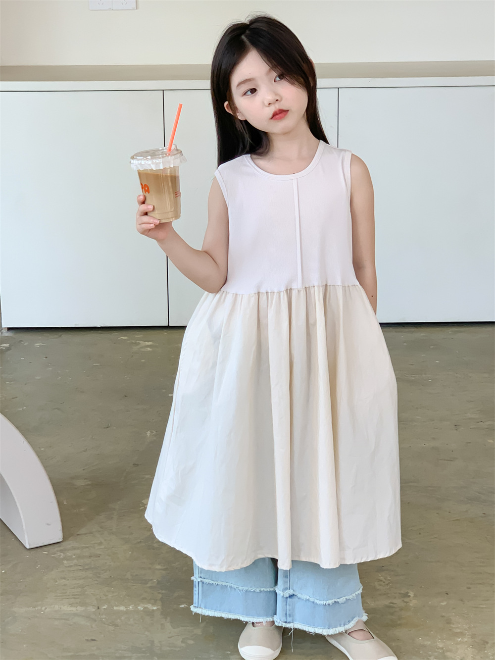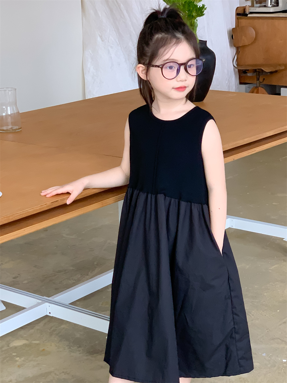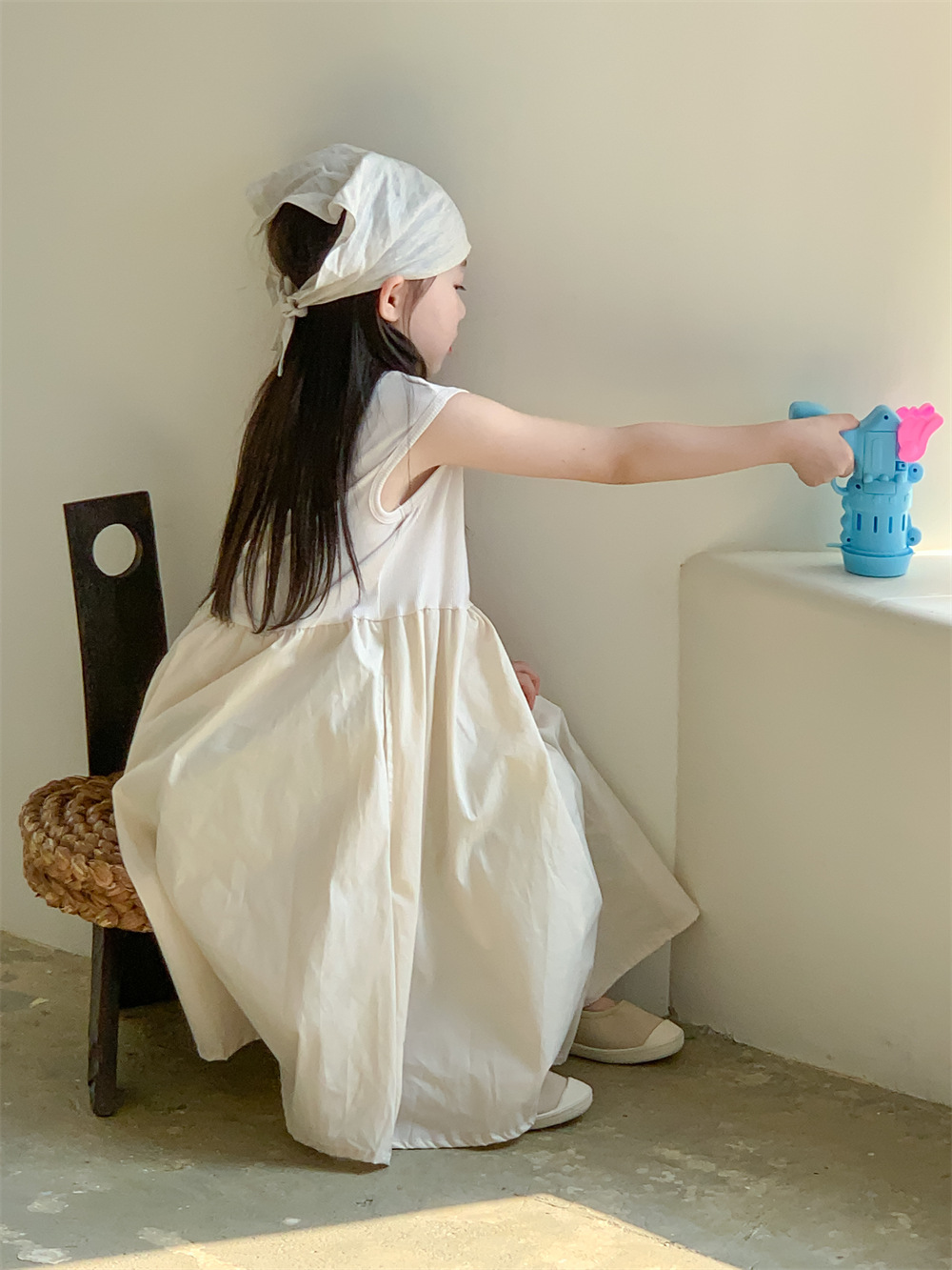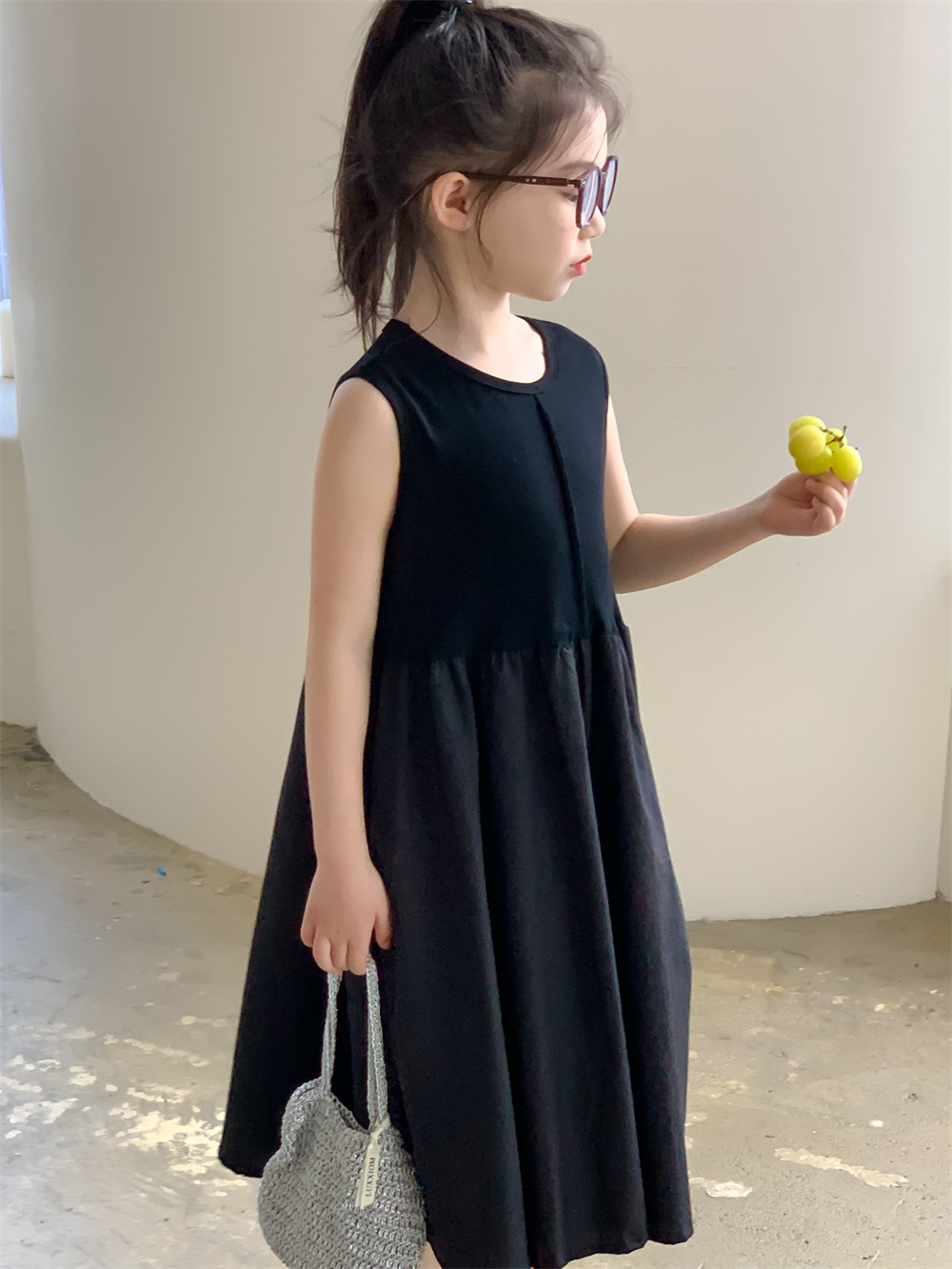 꽃과 소녀를 찾는 어린이 여름 원피스 원피스 어린 소녀 상쾌한 한국 니트 스티칭 조끼 치마 아기 소녀 여름 치마