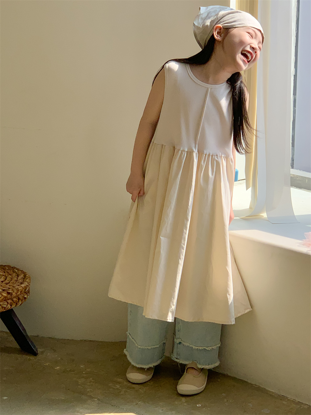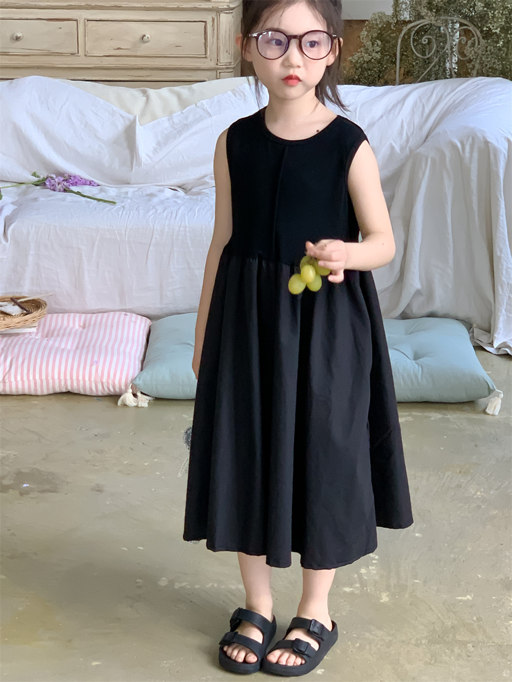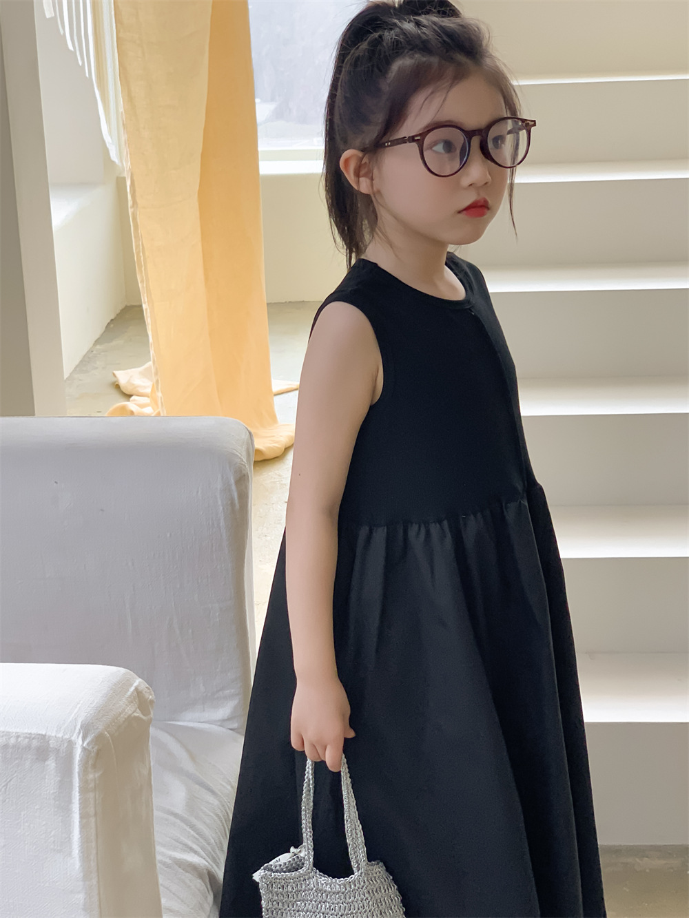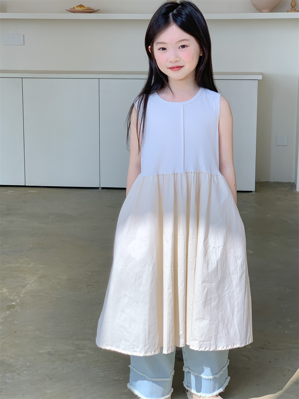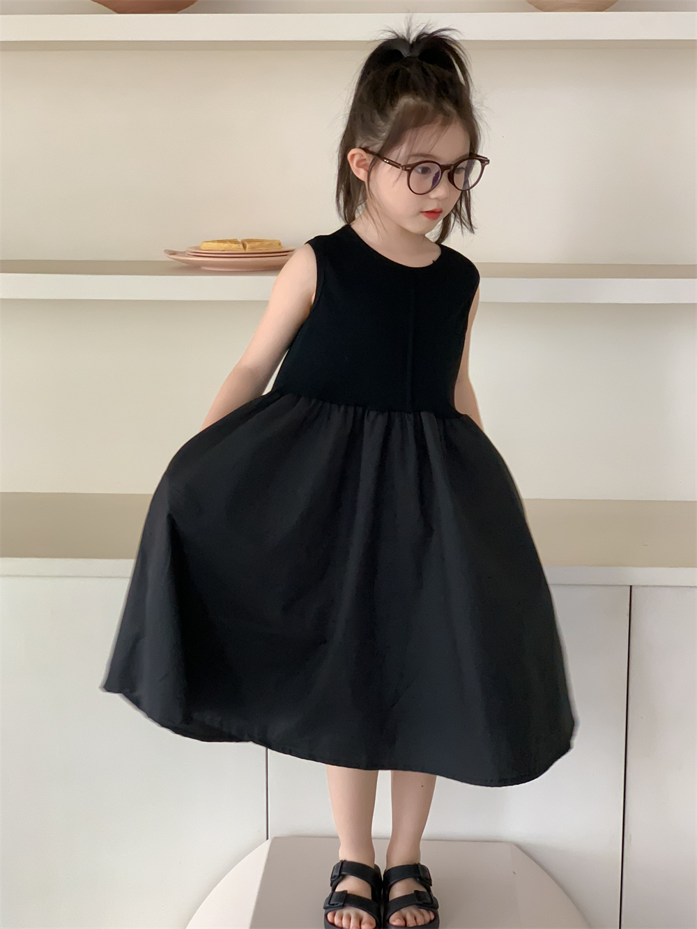 꽃과 소녀를 찾는 어린이 여름 원피스 원피스 어린 소녀 상쾌한 한국 니트 스티칭 조끼 치마 아기 소녀 여름 치마