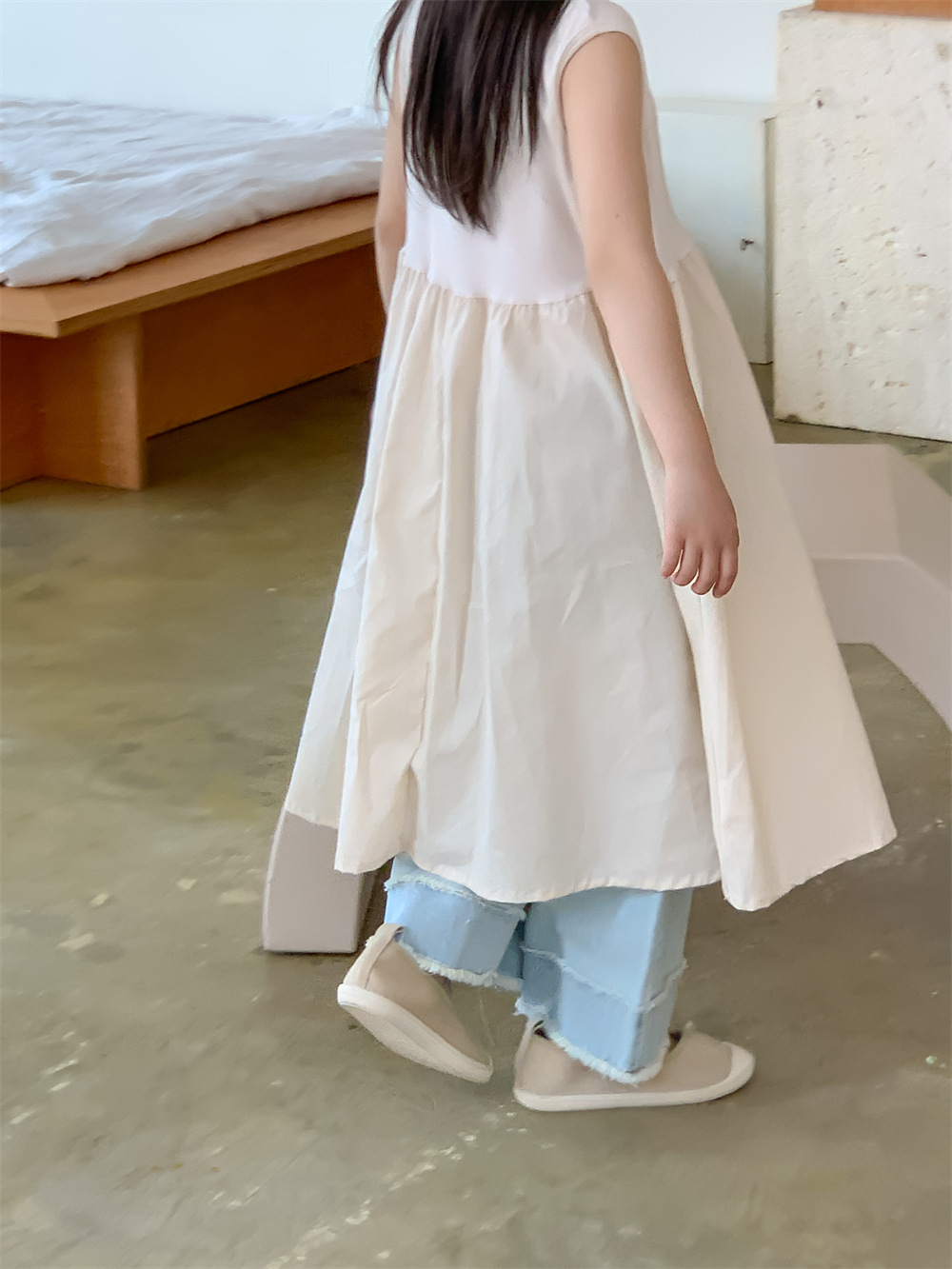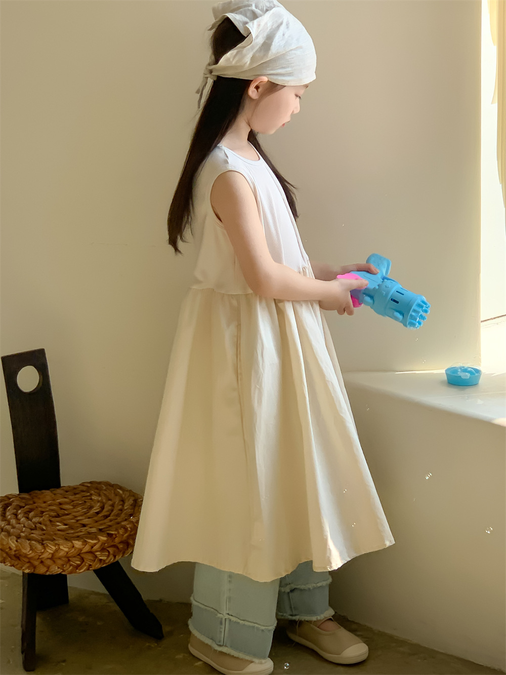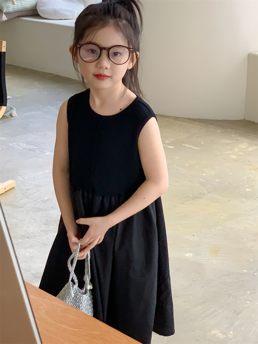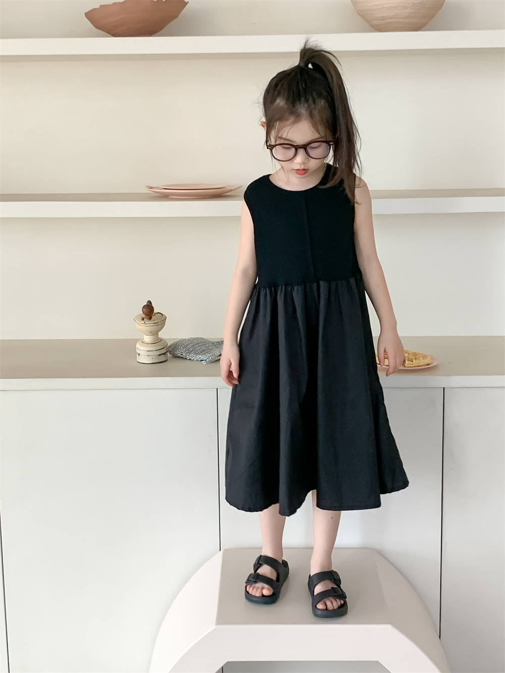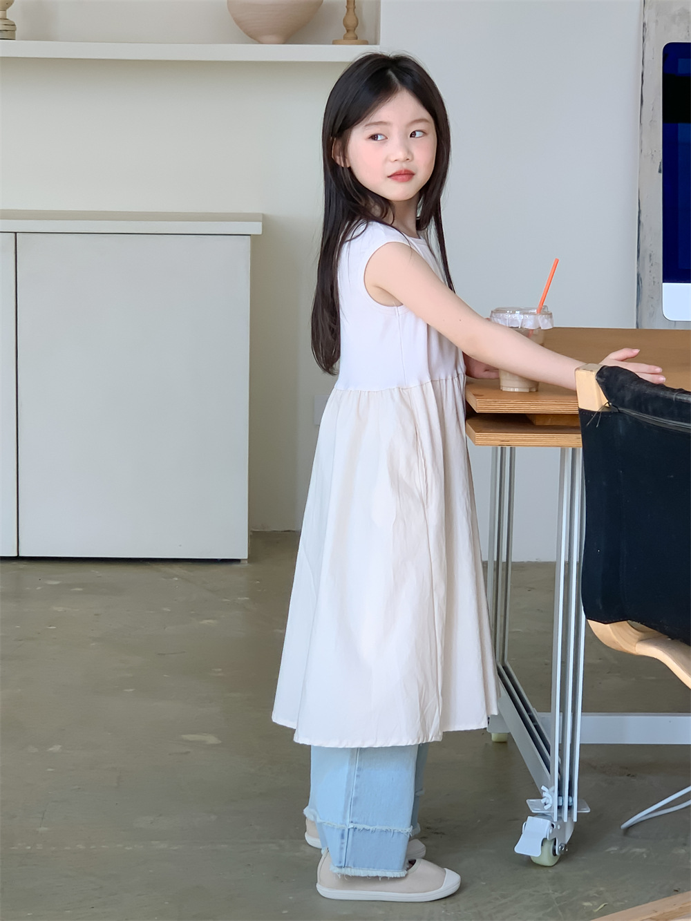 꽃과 소녀를 찾는 어린이 여름 원피스 원피스 어린 소녀 상쾌한 한국 니트 스티칭 조끼 치마 아기 소녀 여름 치마