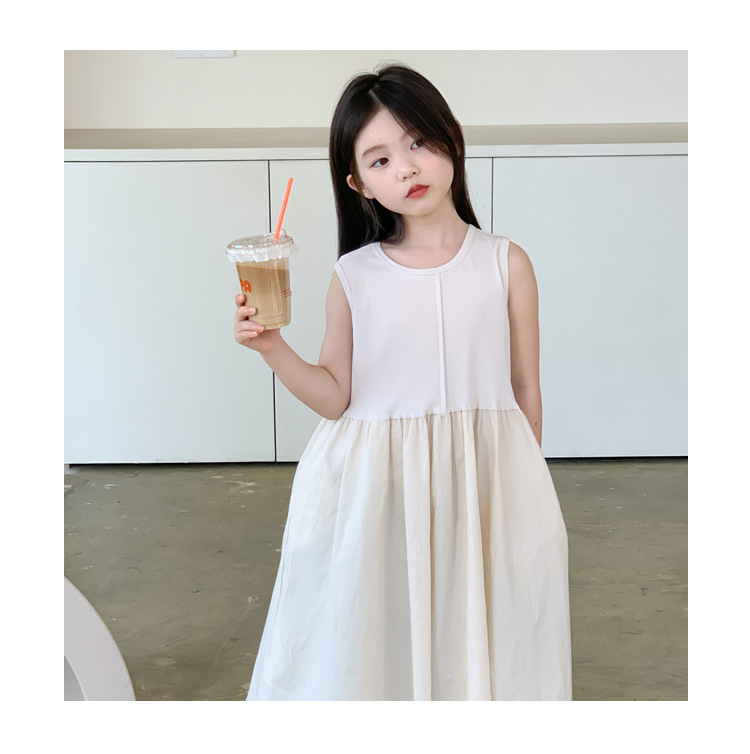 꽃과 소녀를 찾는 어린이 여름 원피스 원피스 어린 소녀 상쾌한 한국 니트 스티칭 조끼 치마 아기 소녀 여름 치마스토어 가기