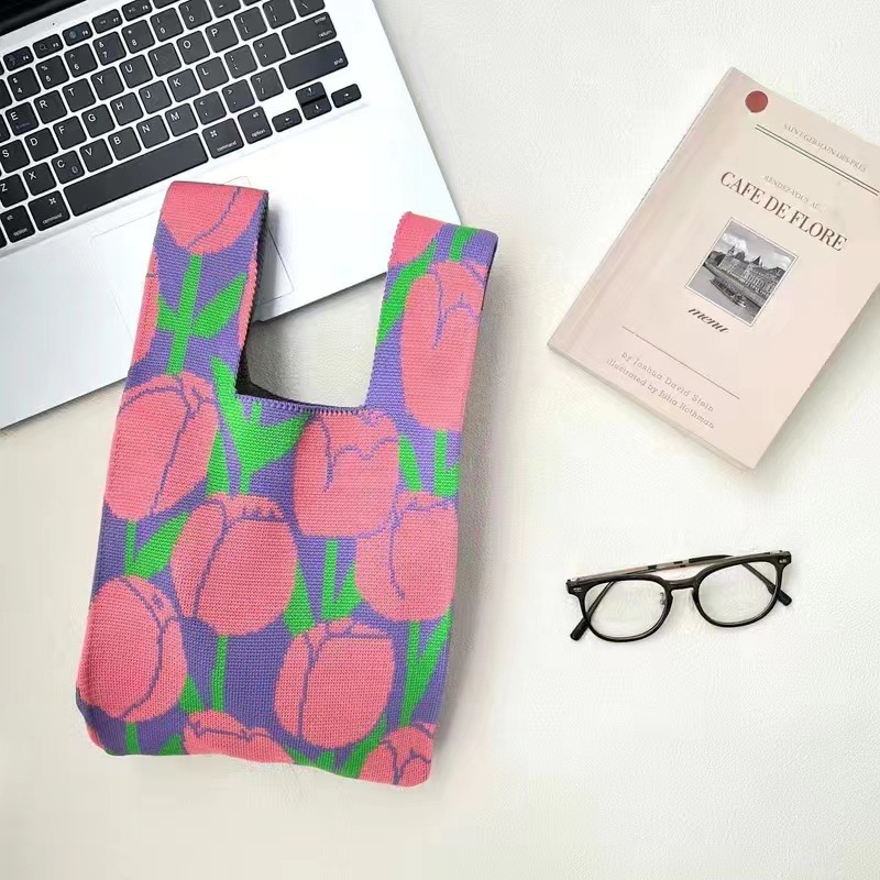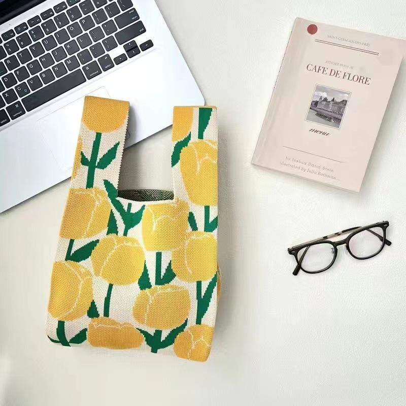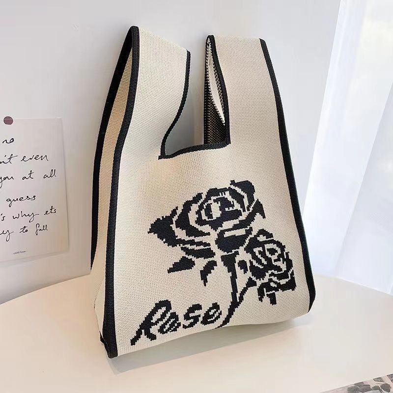 2024 새 핸드백 인터넷 연예인 짠 핸드백 일본과 한국 올 매치 토트 백 캐주얼 여성 가방 여성용 니트 백스토어 가기