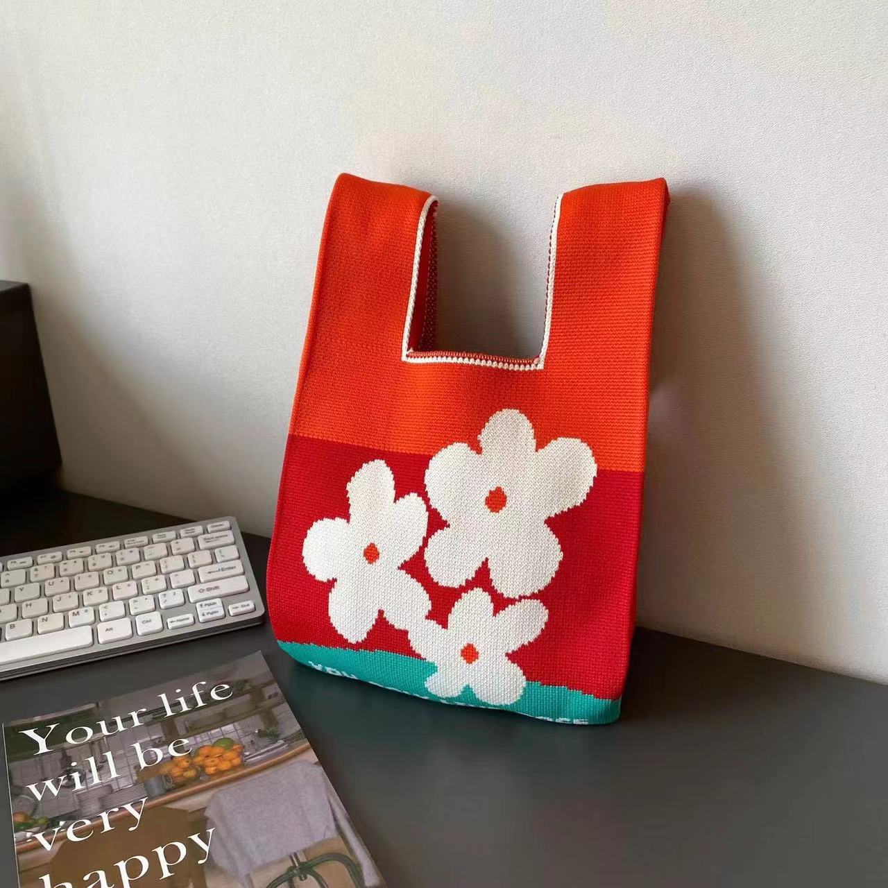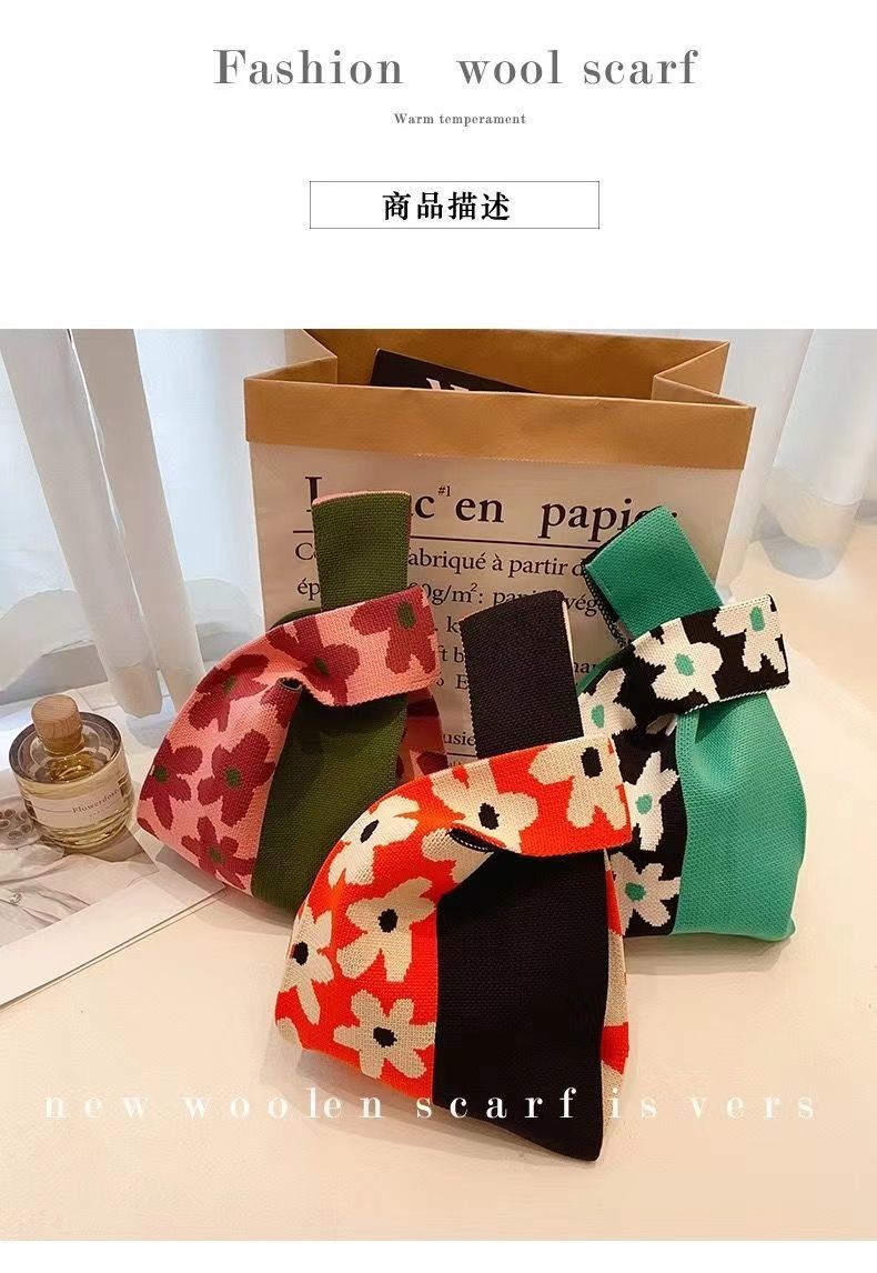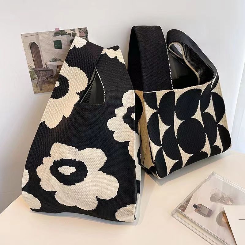 2024 새 핸드백 인터넷 연예인 짠 핸드백 일본과 한국 올 매치 토트 백 캐주얼 여성 가방 여성용 니트 백