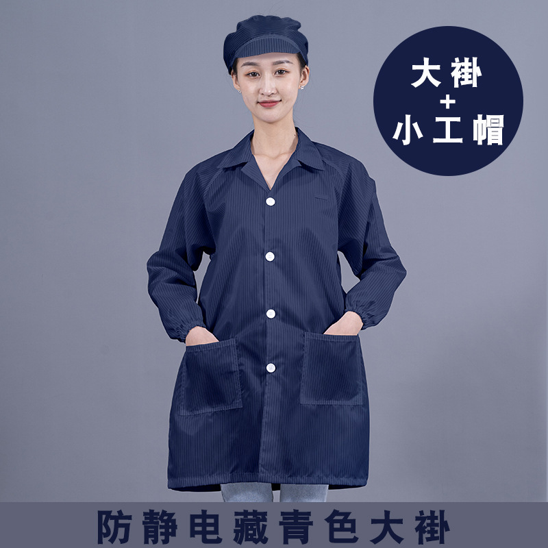 정전기 방지 코트 먼지가없는 의류 블루 스트라이프 정전기 방지 모자 전자 공장 작업장 반도체 보호 의류 도매