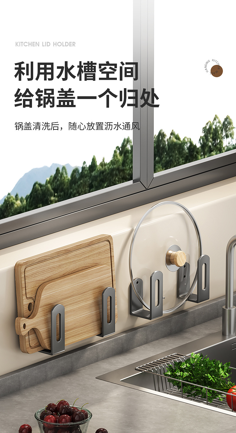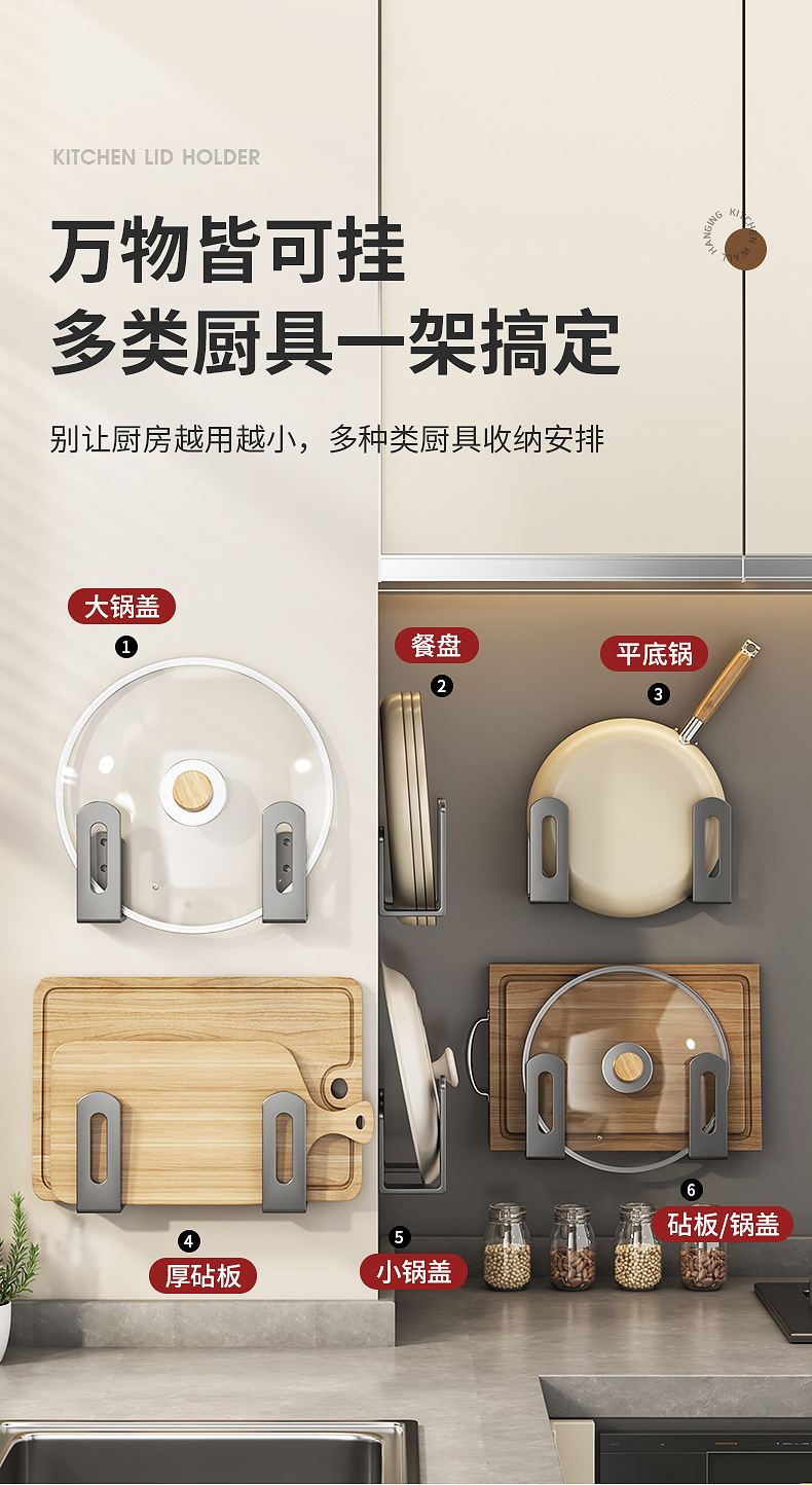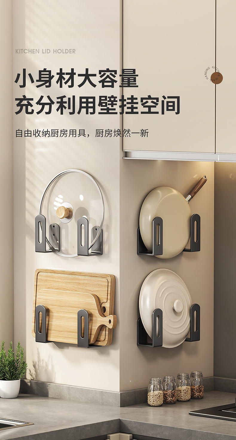 펀치 프리 팟 커버 랙 주방 스토리지 랙 벽걸이 형 커팅 보드 다기능 벽 스토리지 아티팩트 랙