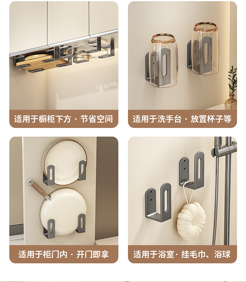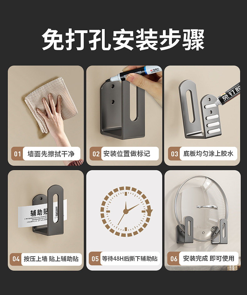 • 탄소 강철 벽에 장착 된 냄비 커버 랙 1 쌍 [못없는 접착제 포함]
