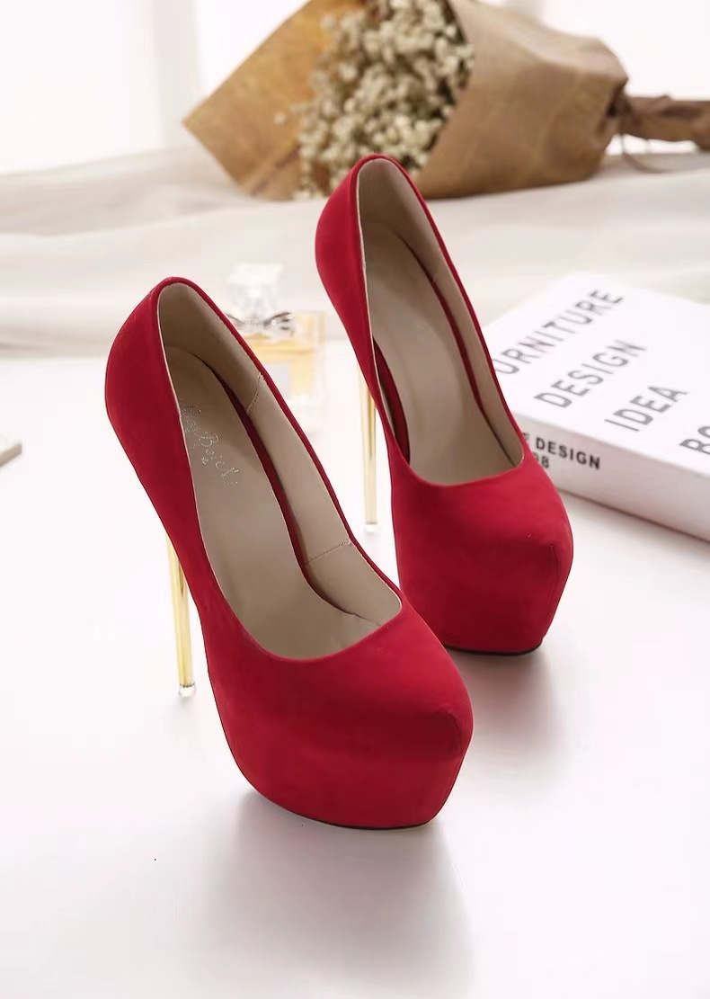 힐즈 크로스보더 스틸레토 워터프루프 플랫폼 블랙 하이힐 레드 슈즈 여성용 두꺼운 밑창 얕은 입구 수출용 초하이힐