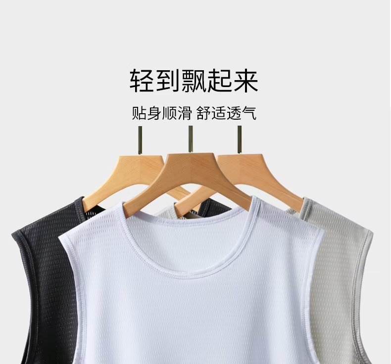 아이스 실크 메쉬 조끼 남성용 얇은 민소매 티셔츠 빠른 건조 캐주얼 스포츠 양복 조끼 느슨한 피트니스 언더 셔츠