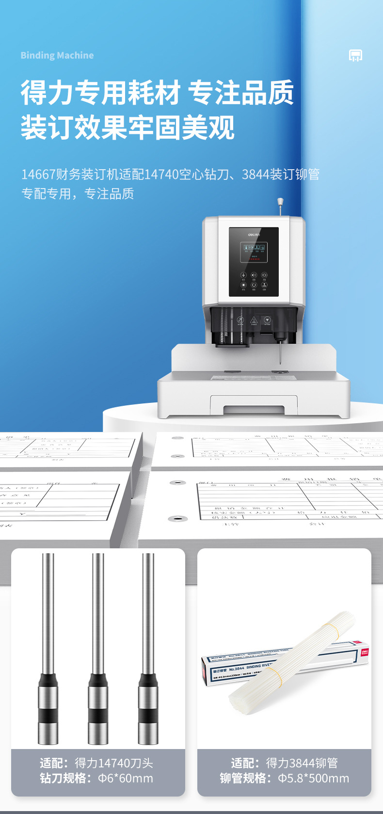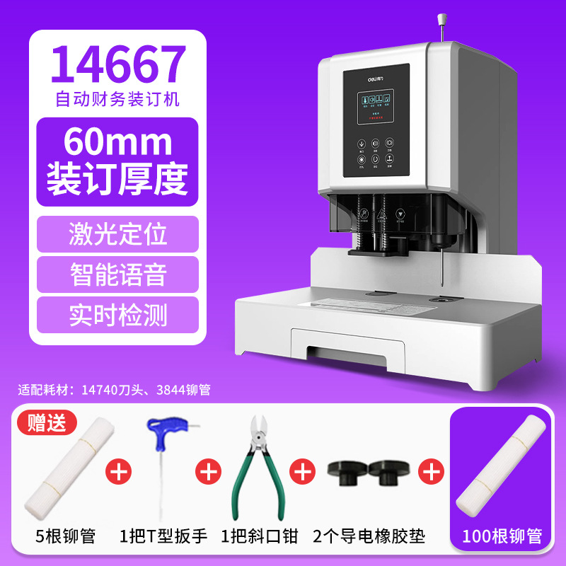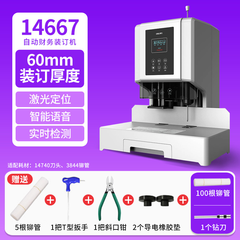 델리 14667 인증서 바인딩 기계 자동 문서 바인딩 재무 회계 핫멜트 리벳 튜브 전기 펀칭 기계