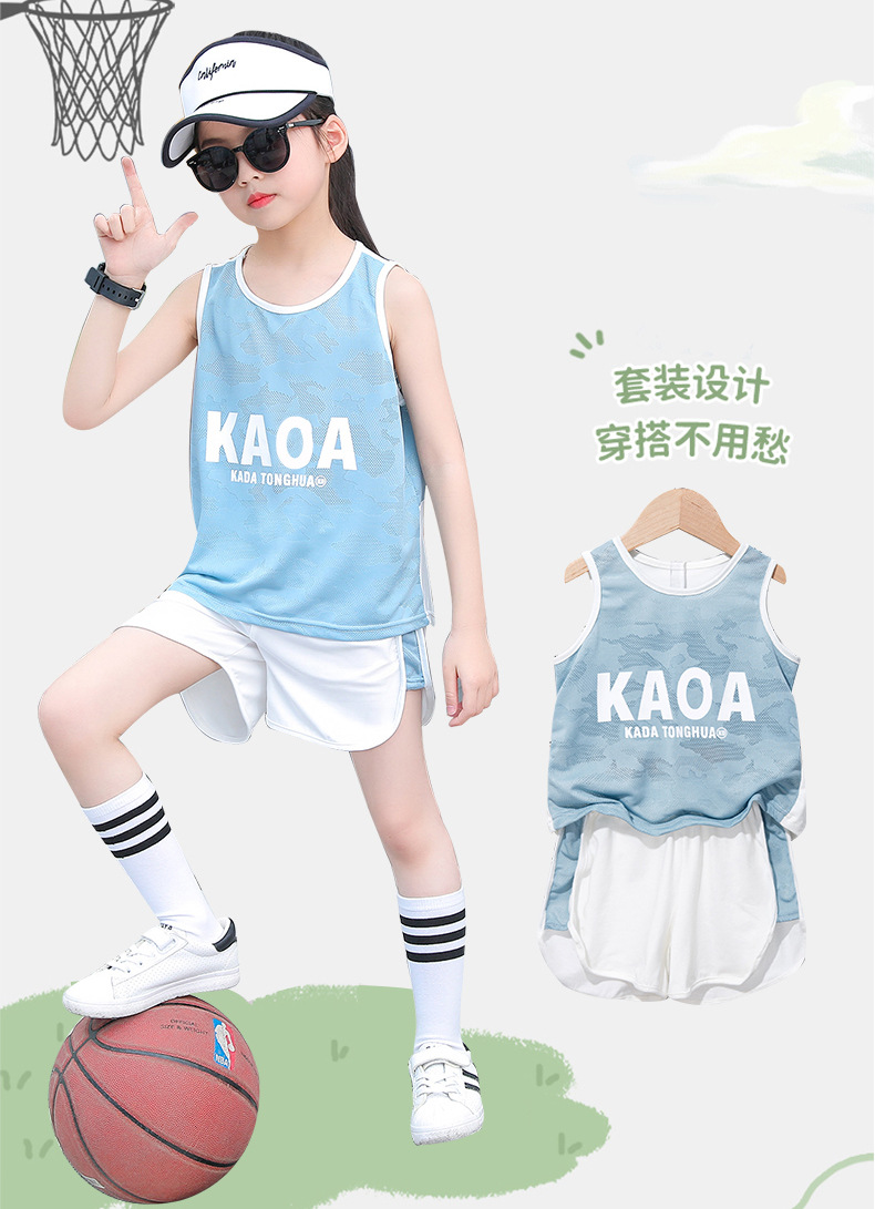 어린이 스포츠 조끼 세트 아동복 여름 여름 얇은 메쉬 농구복 훈련 옷 소녀 소년 새로운