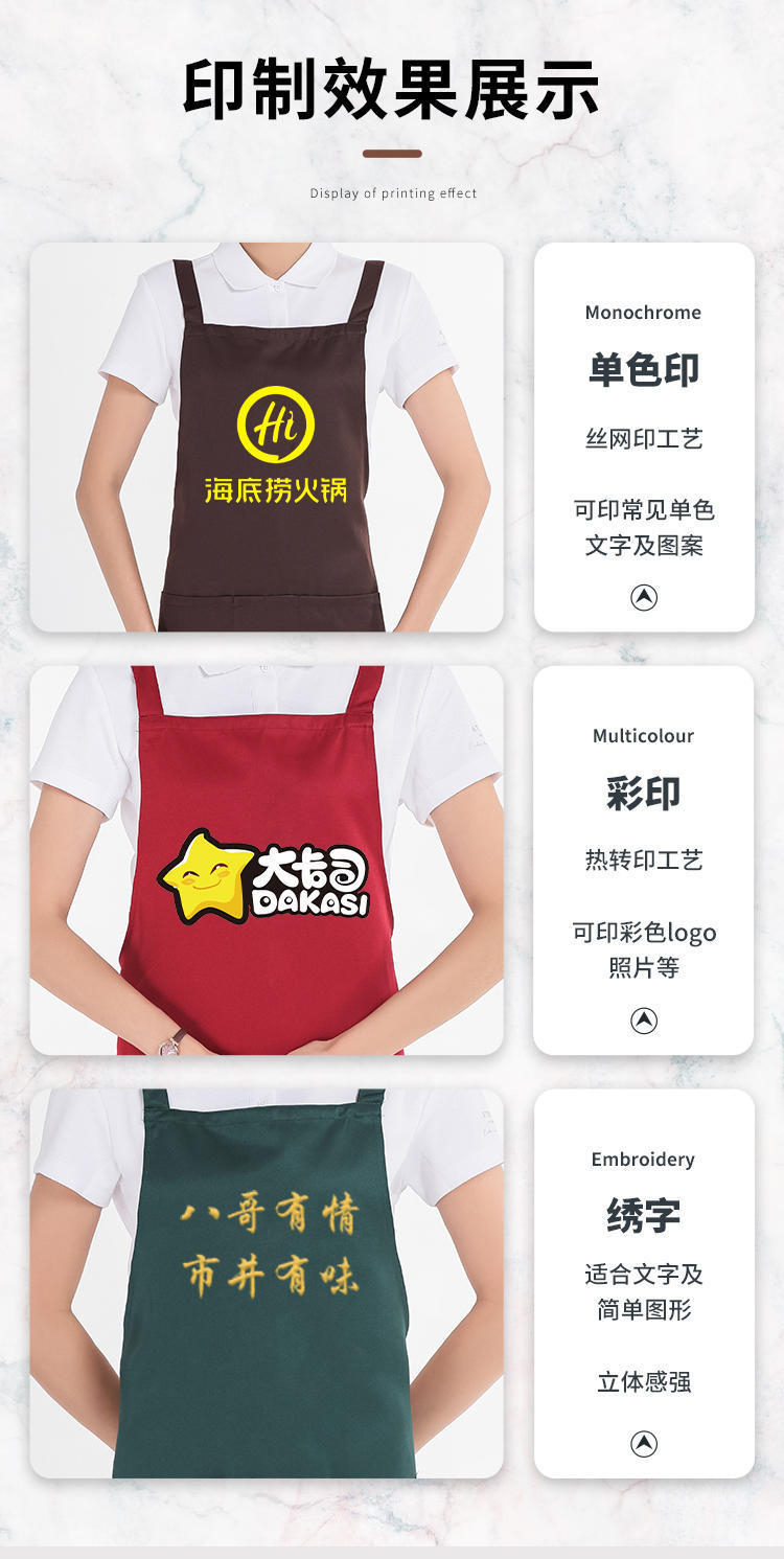 앞치마 사용자 정의 로고 작업 요리사 여름 의류 남성과 여성 패션 커피 숍 광고 앞치마 사용자 정의 diy 인쇄스토어 가기