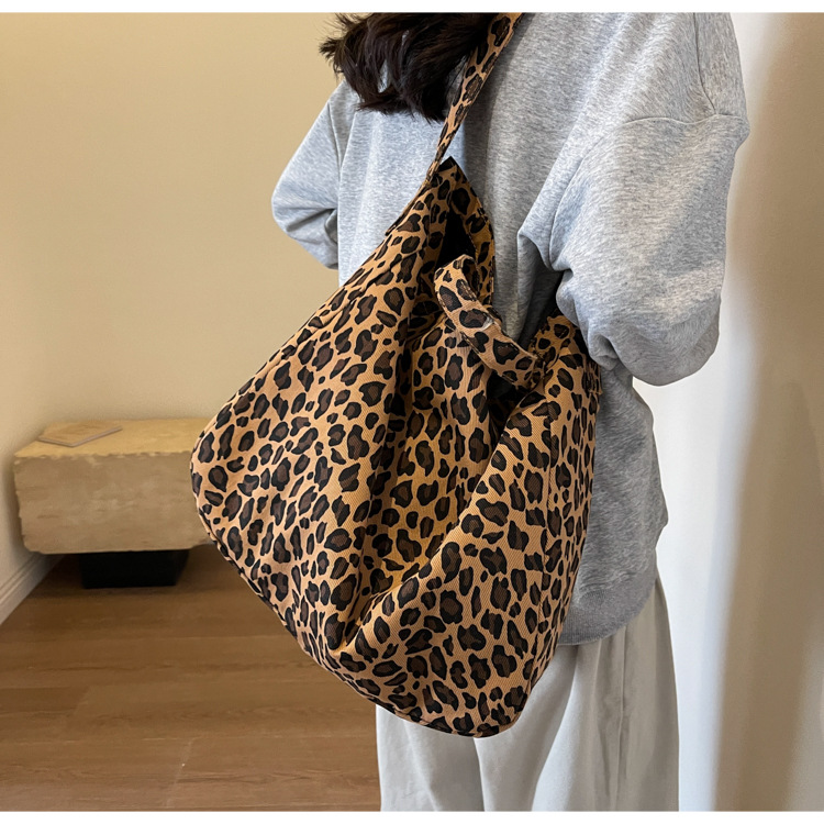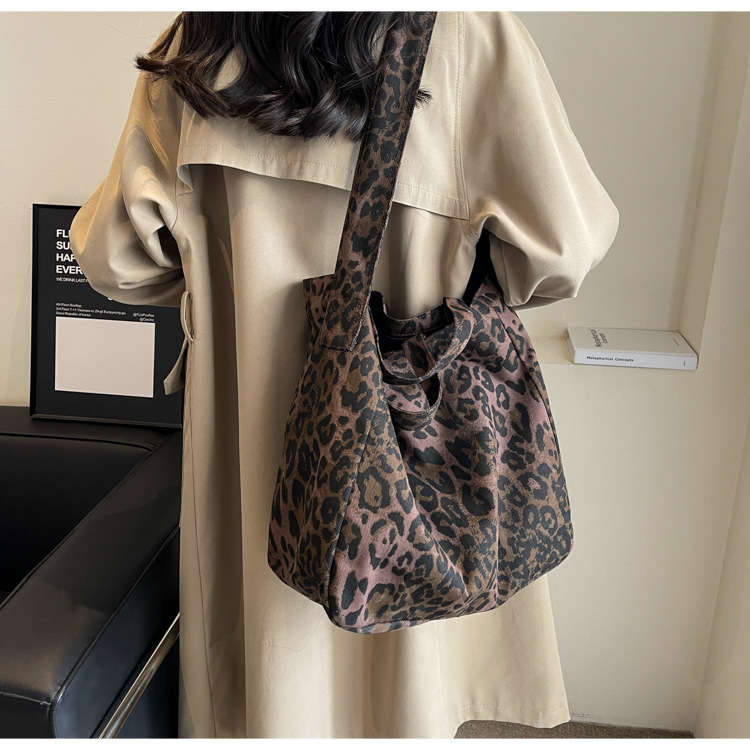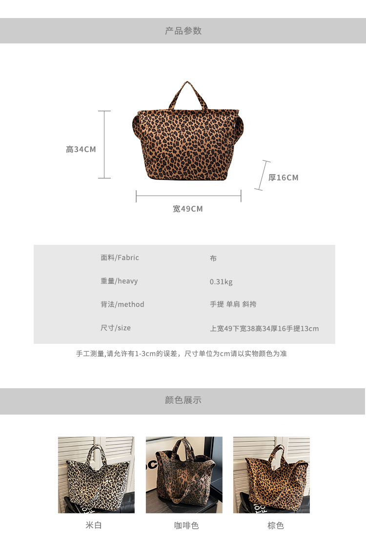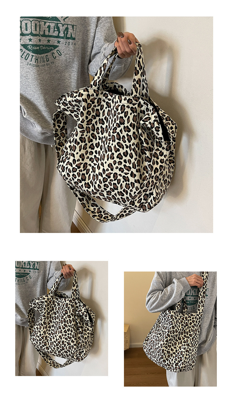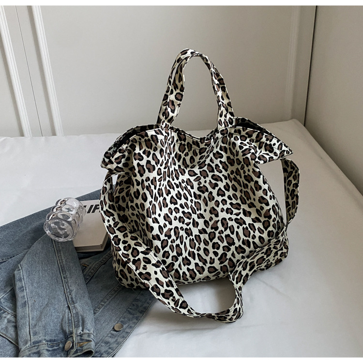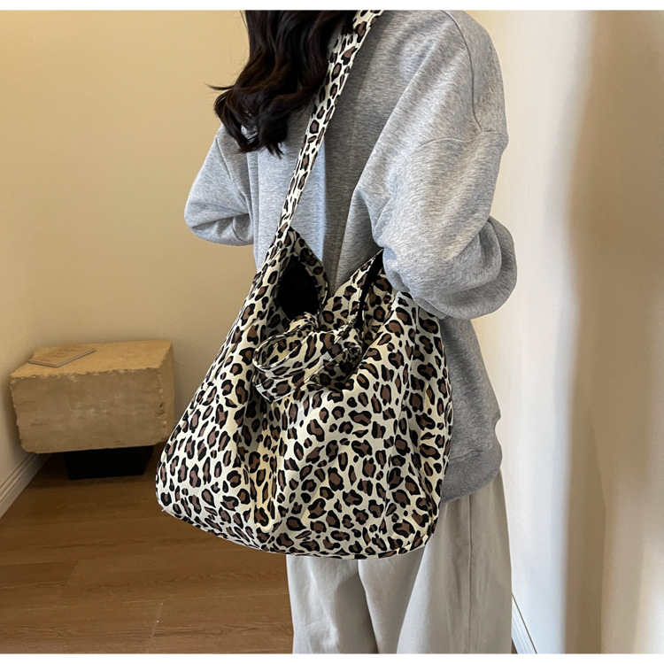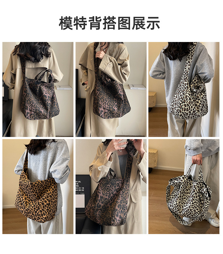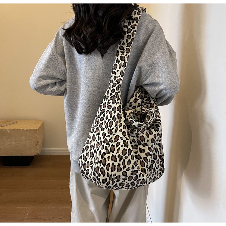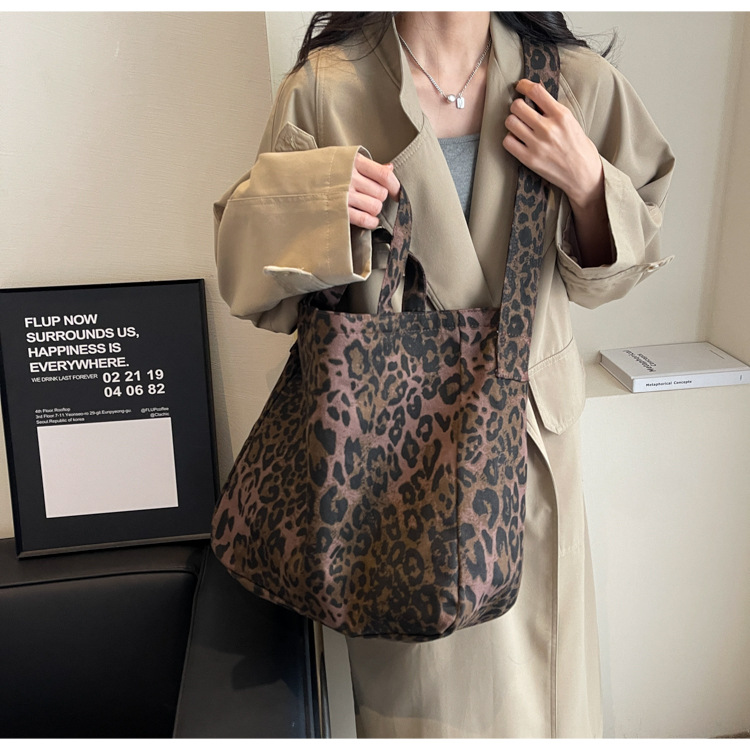 레오파드 프린트 캔버스 통근 게으른 스타일 가방 여성 2024 대외 무역 패션 휴대용 대용량 싱글 숄더 엄마 크로스 바디 백스토어 가기