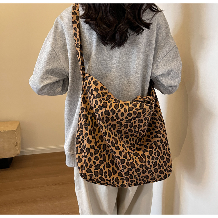 레오파드 프린트 캔버스 통근 게으른 스타일 가방 여성 2024 대외 무역 패션 휴대용 대용량 싱글 숄더 엄마 크로스 바디 백
