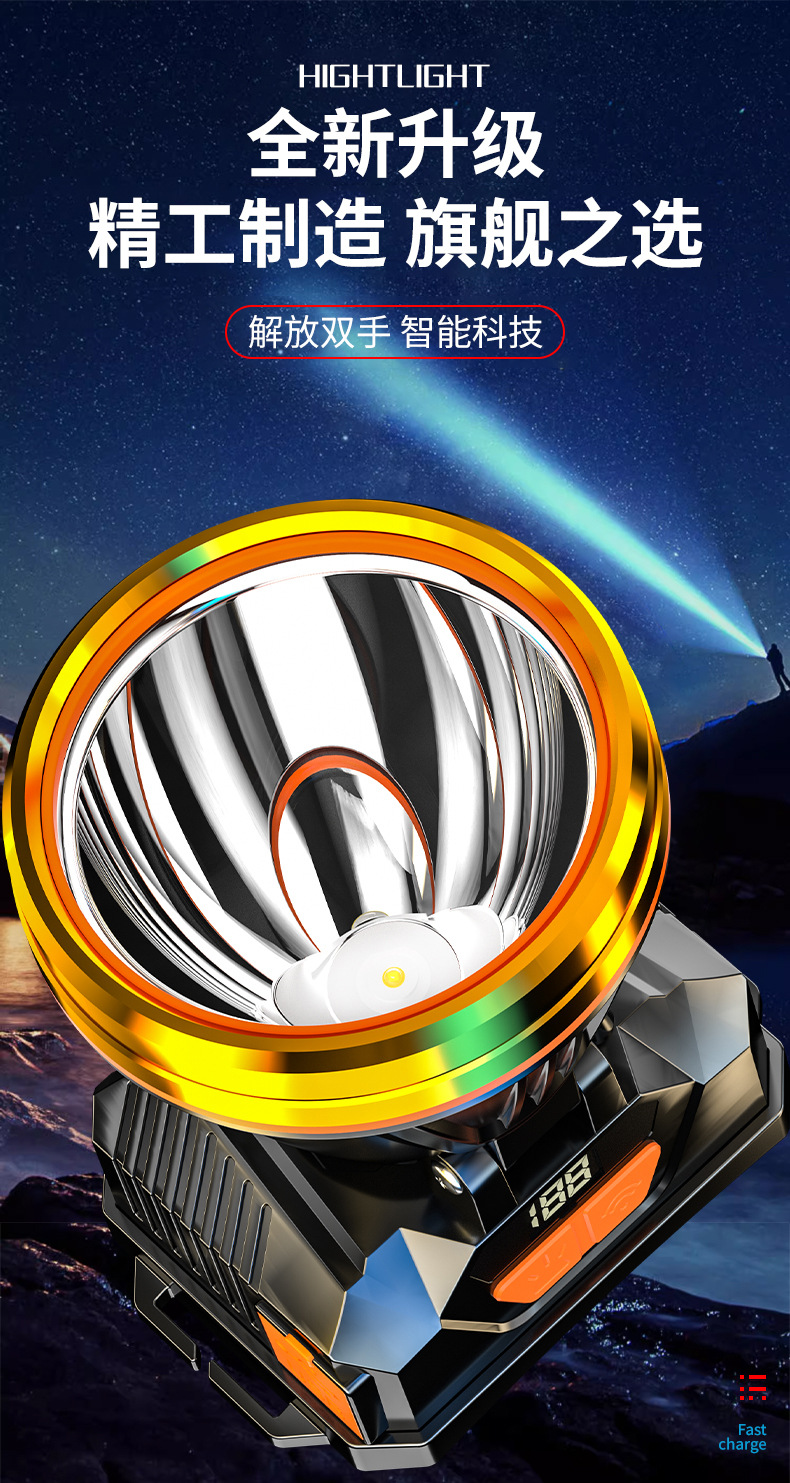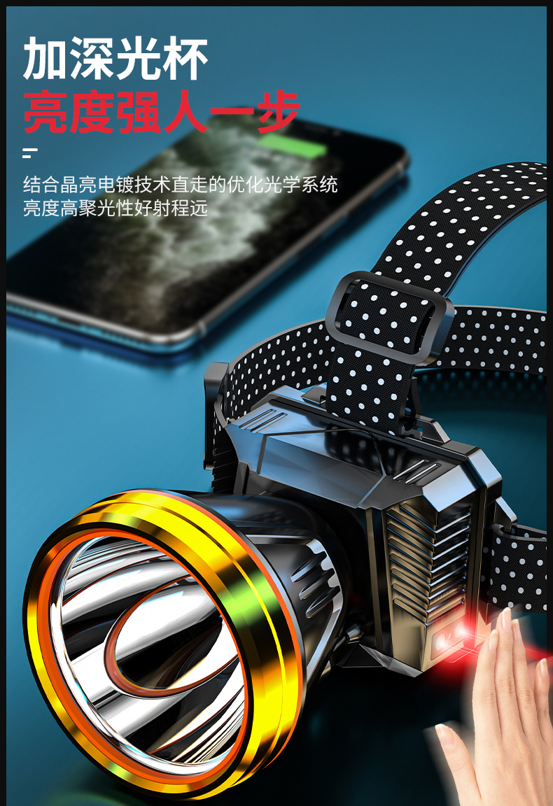 헤드 라이트 강한 조명 충전 슈퍼 밝은 헤드 장착 울트라 긴 지구력 손전등 야외 유도 낚시 특별 야간 낚시 광부 램프
