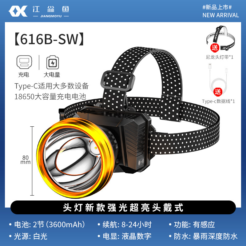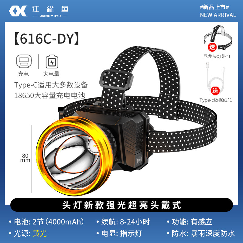 강력한 라이트 헤드램프, 충전식, 긴 배터리 수명, 리튬 배터리, 초고휘도 헤드램프, 야외 센서, 낚시 전용, 야생 낚시 및 해변 낚시용
