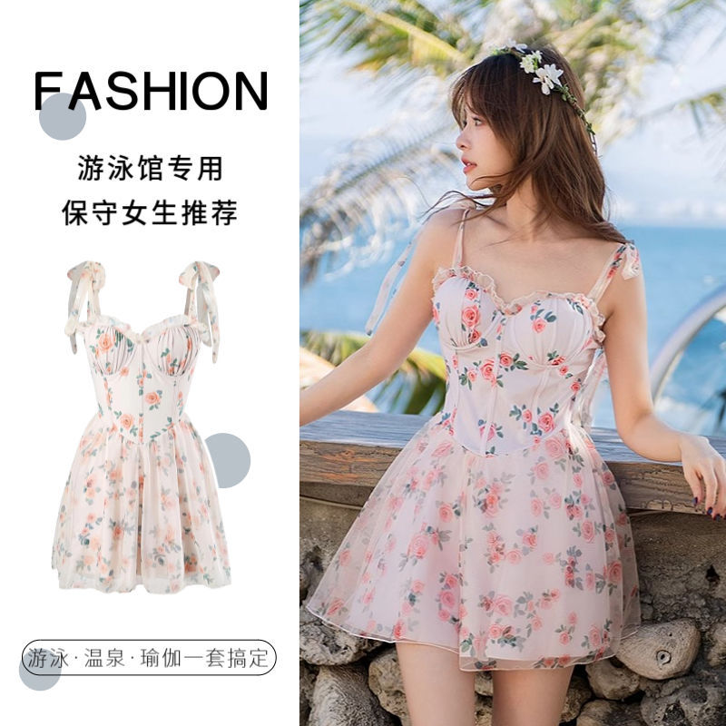 여성 수영복 2024 새로운 여름 보수적 인 원피스 원피스 슬리밍 순수한 욕망 높은 감각 학생 수영 세트스토어 가기