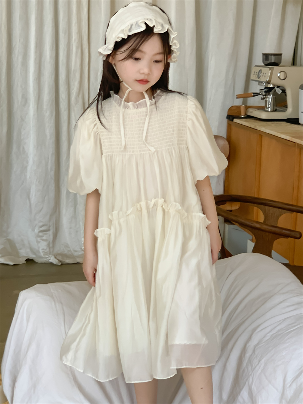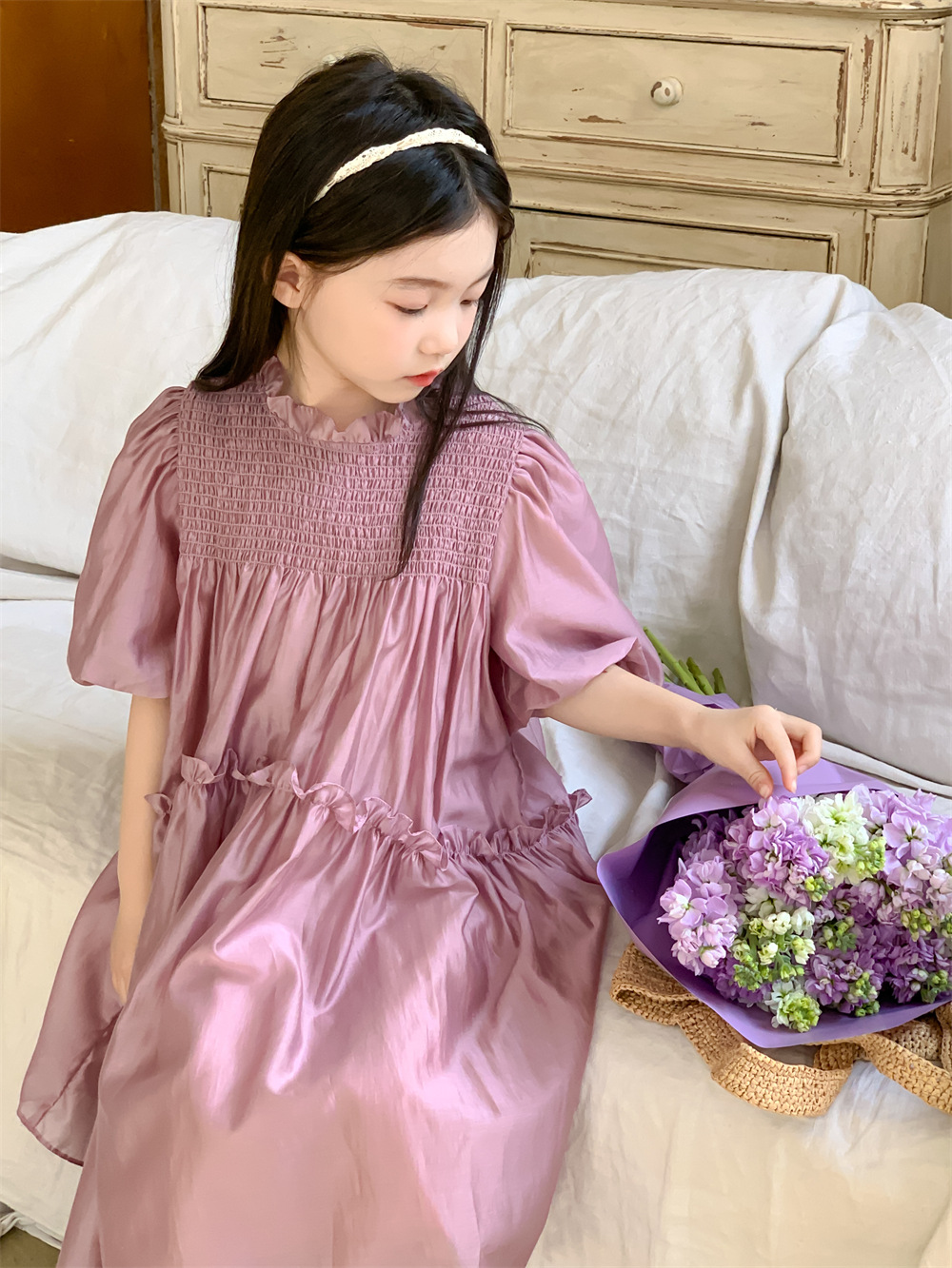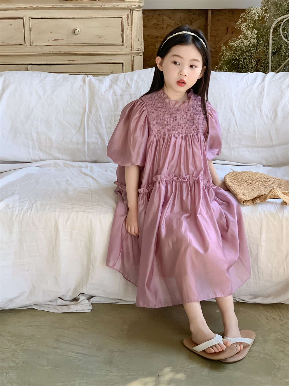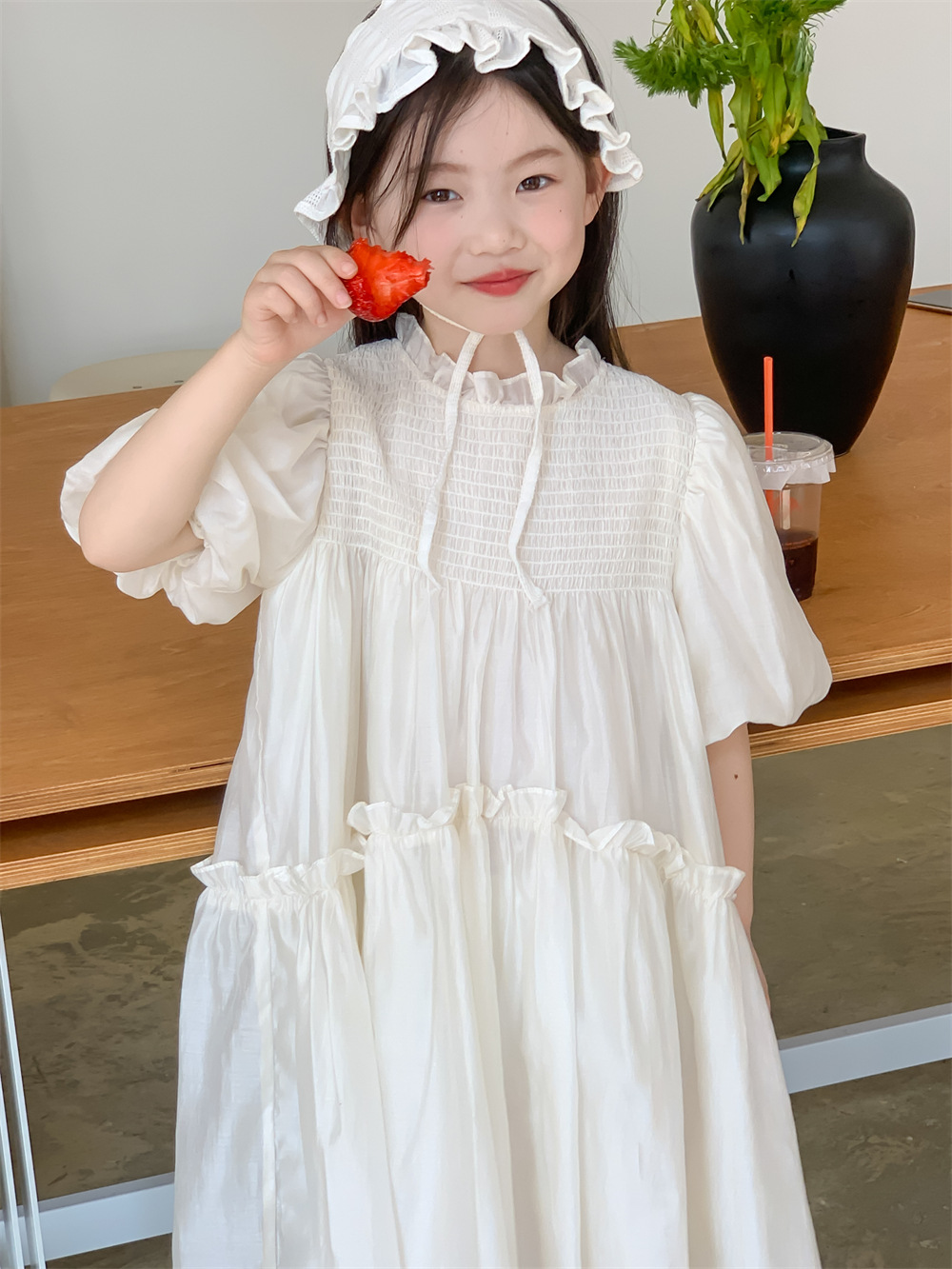 꽃과 검색 소녀 여름 원피스 영국 스타일 레이스 칼라 단색 서양식 원피스 아기 소녀 퍼프 소매 공주 원피스스토어 가기