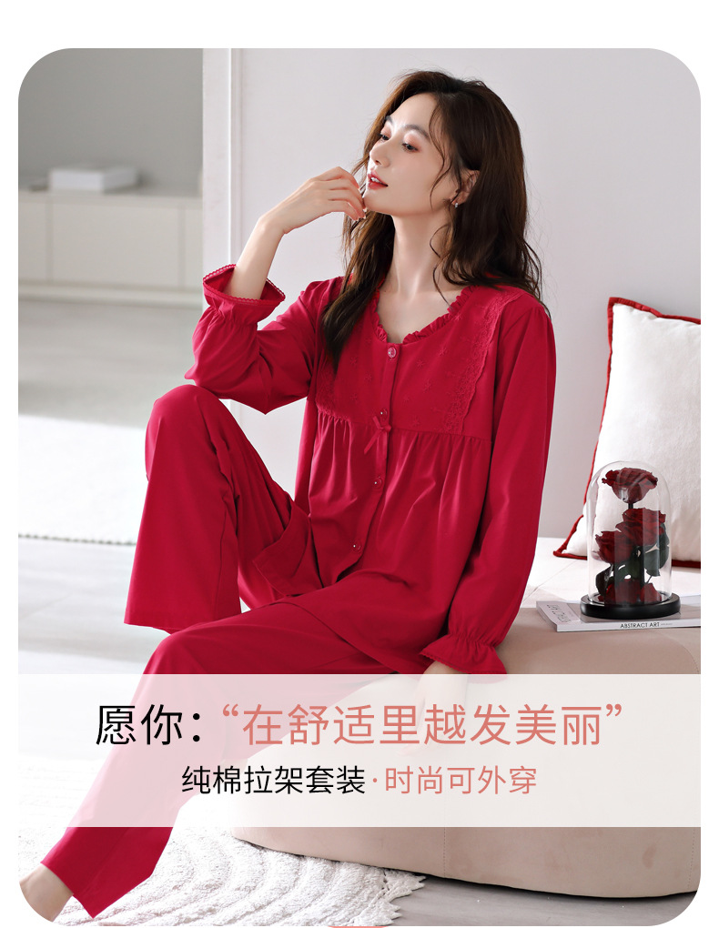 2024 새 잠옷 여성 봄과 가을 긴팔 면화 빨갛게 태어난 해 엄마 플러스 사이즈 홈웨어 세트스토어 가기