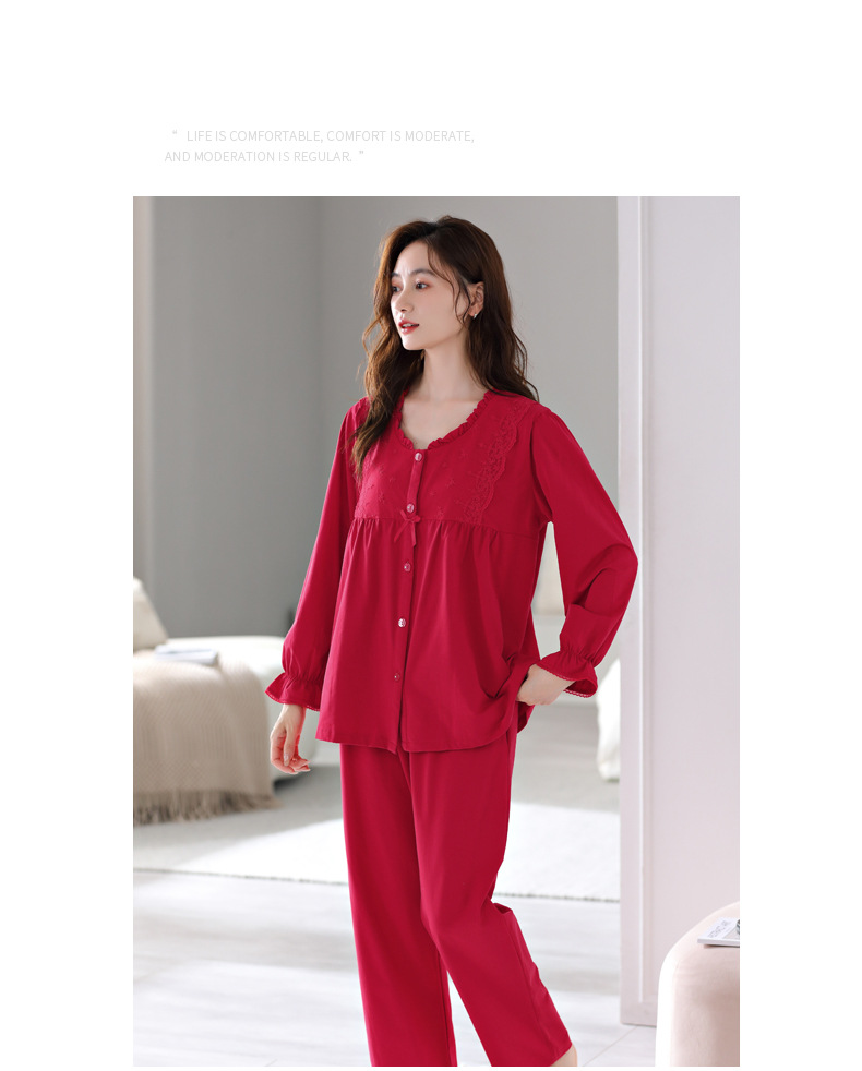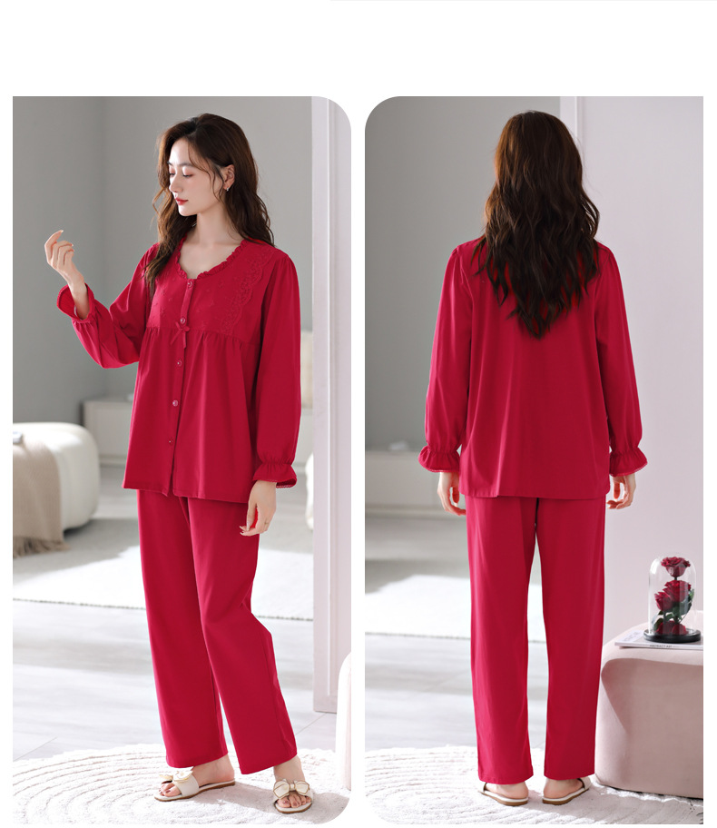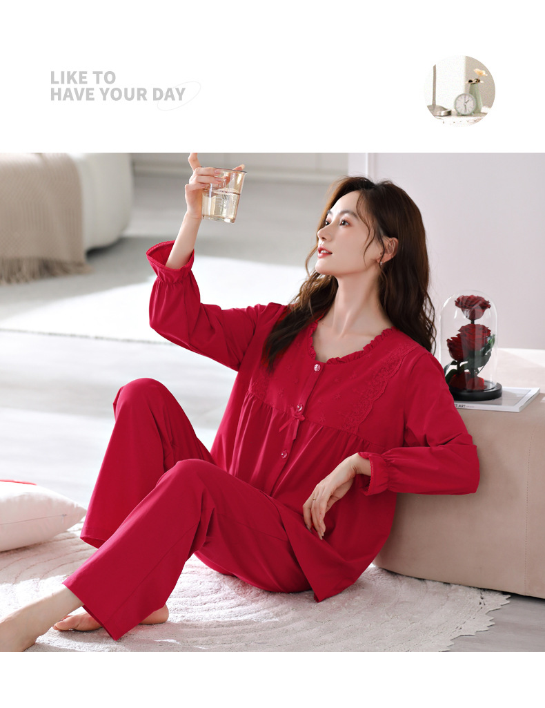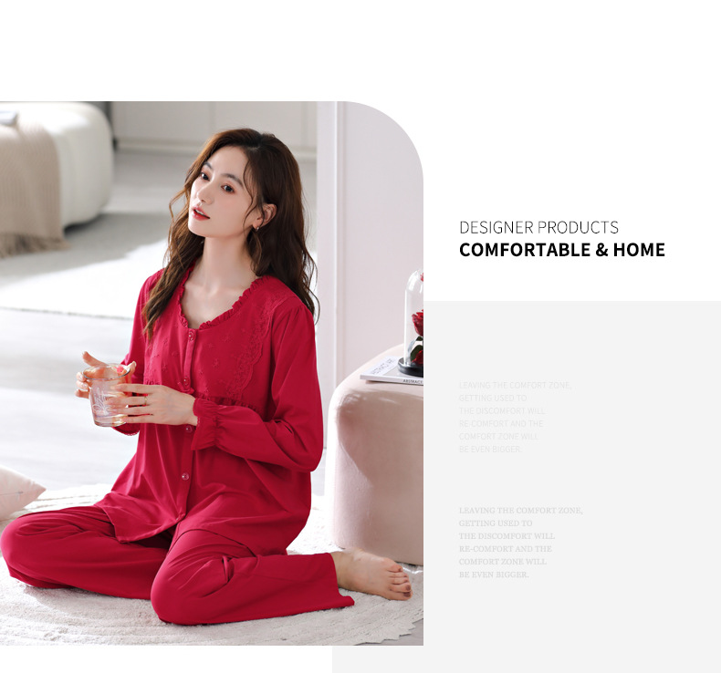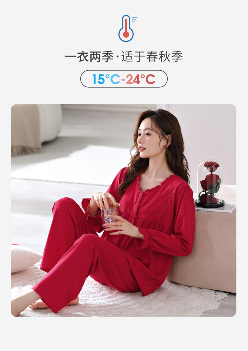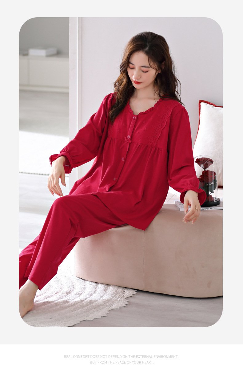 2024 새 잠옷 여성 봄과 가을 긴팔 면화 빨갛게 태어난 해 엄마 플러스 사이즈 홈웨어 세트