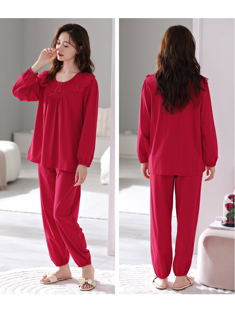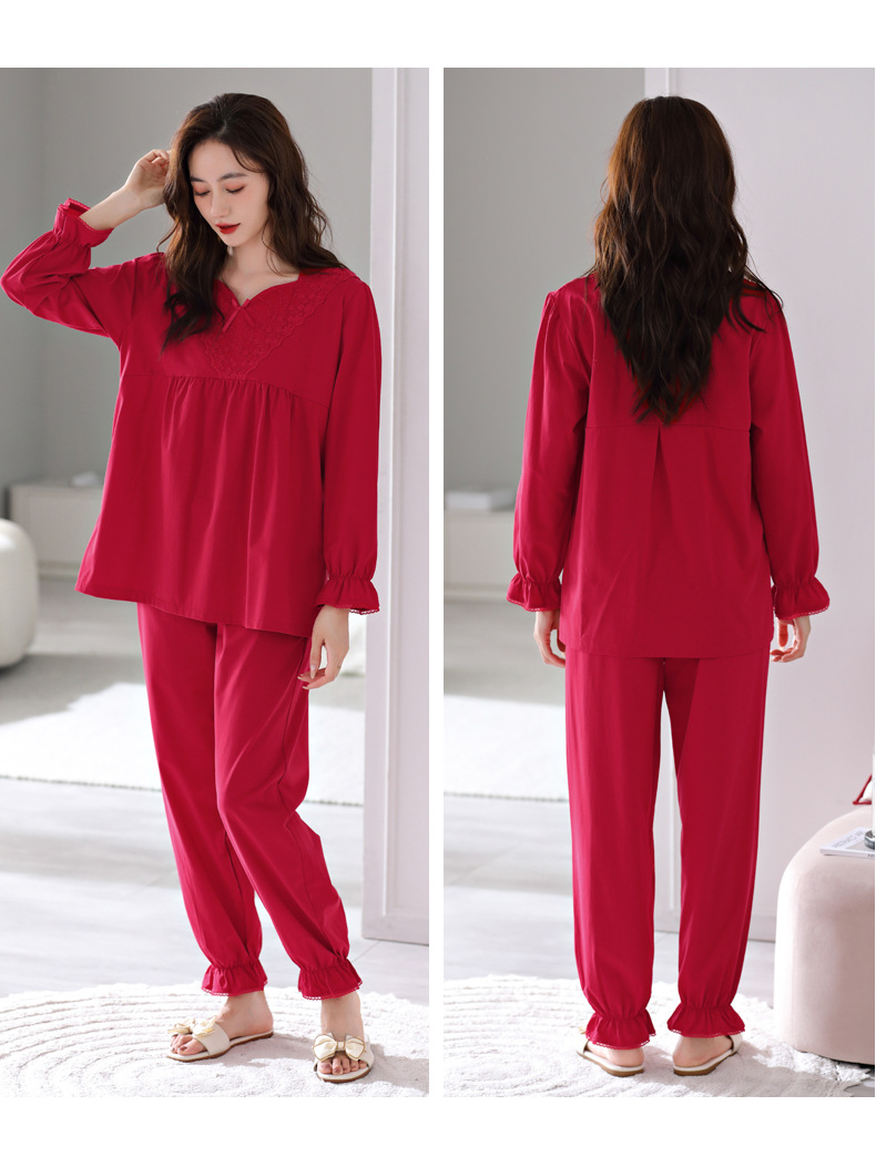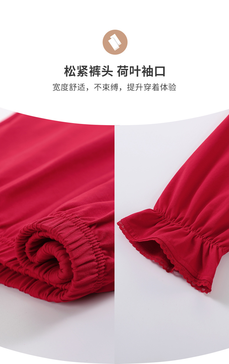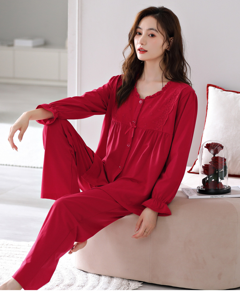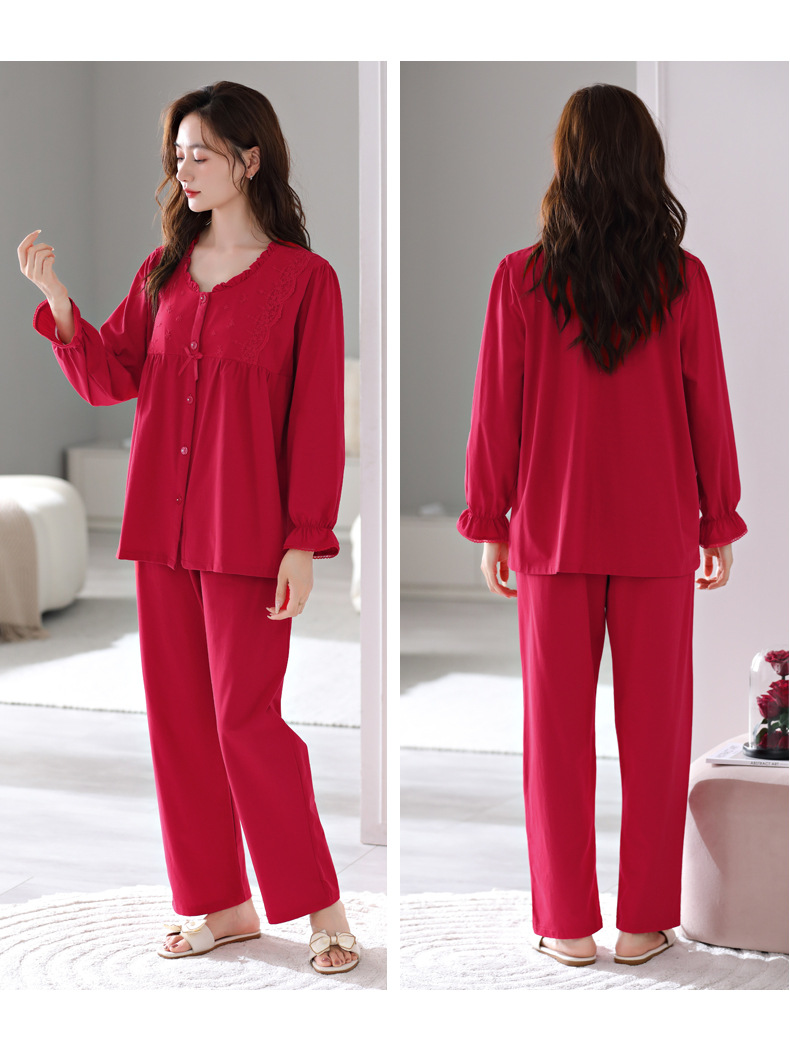 2024 새 잠옷 여성 봄과 가을 긴팔 면화 빨갛게 태어난 해 엄마 플러스 사이즈 홈웨어 세트