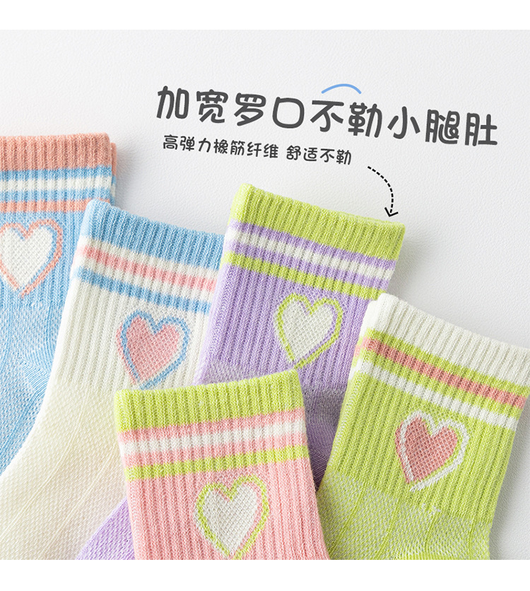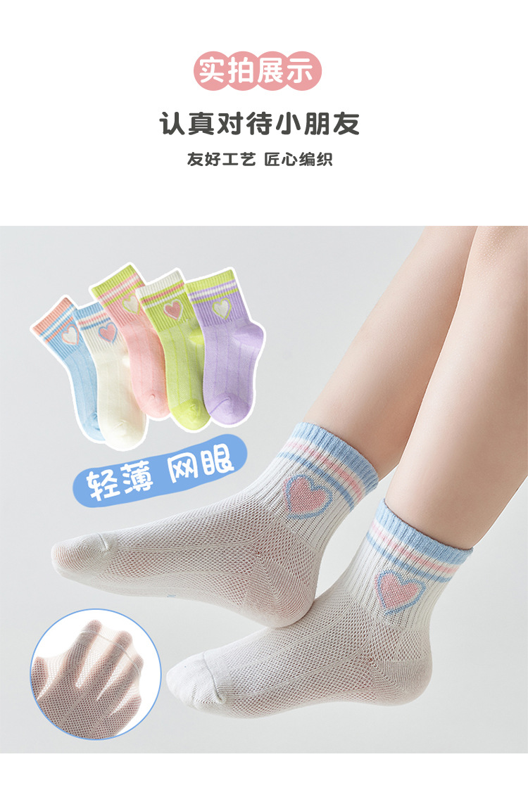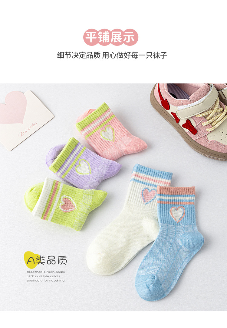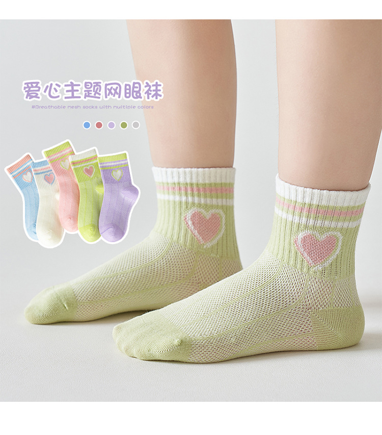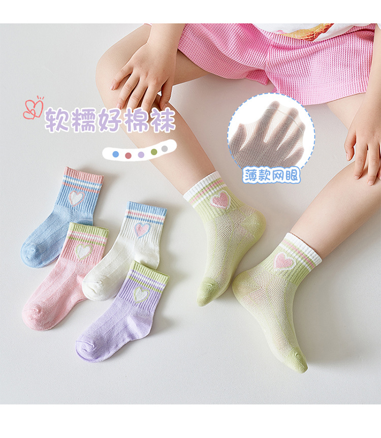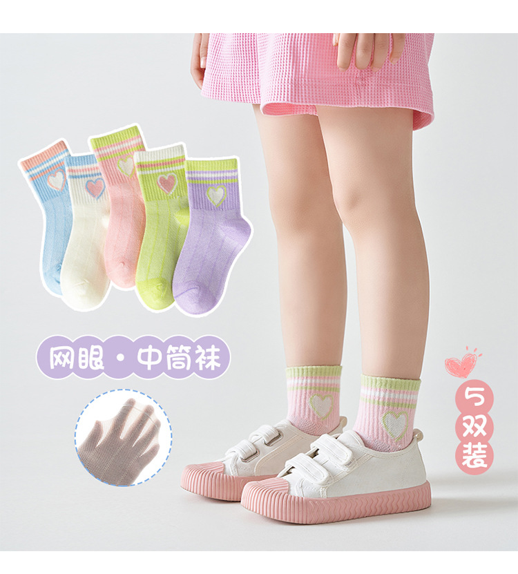 어린이 양말 소녀 여름 사랑 메쉬 양말 중간 종아리 양말 통기성 아기 만화 면화 양말 소년