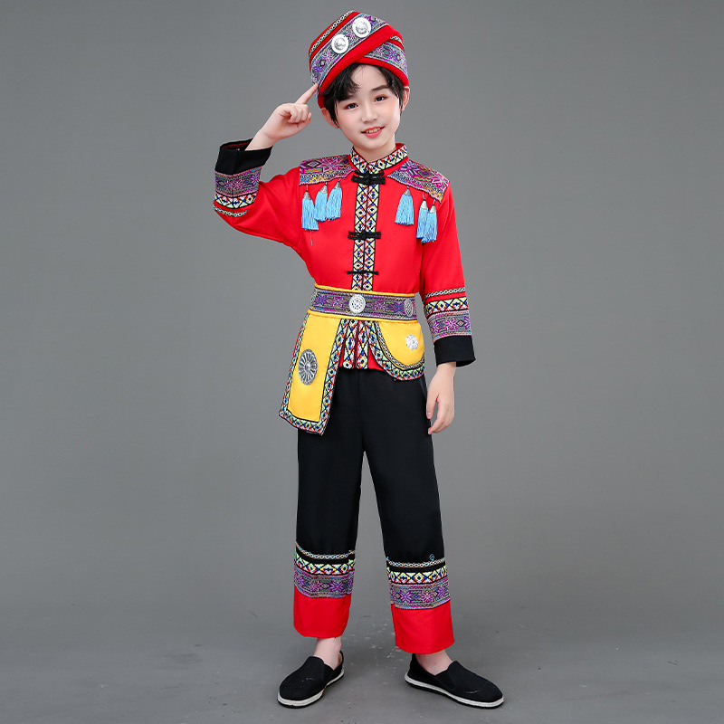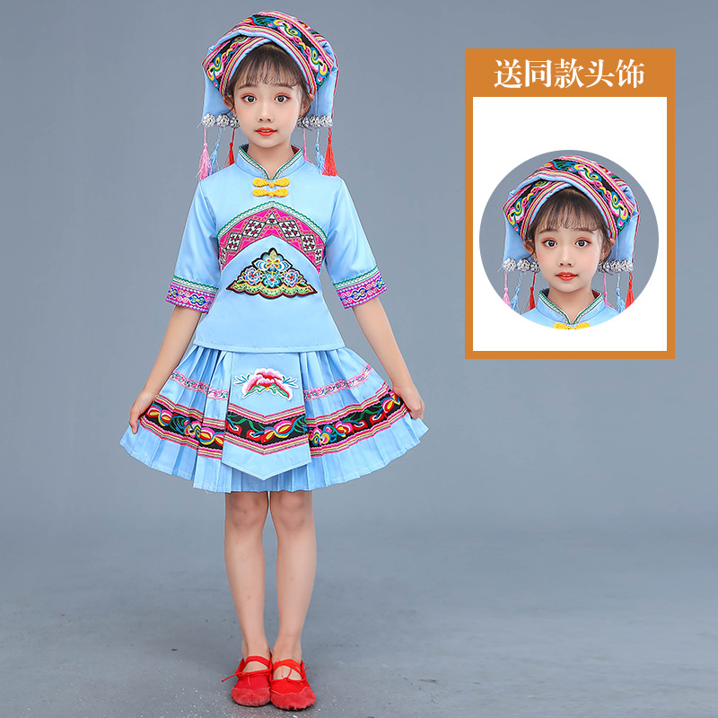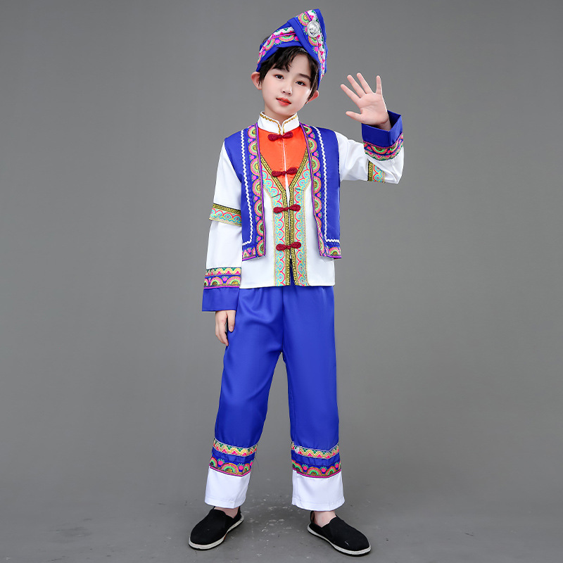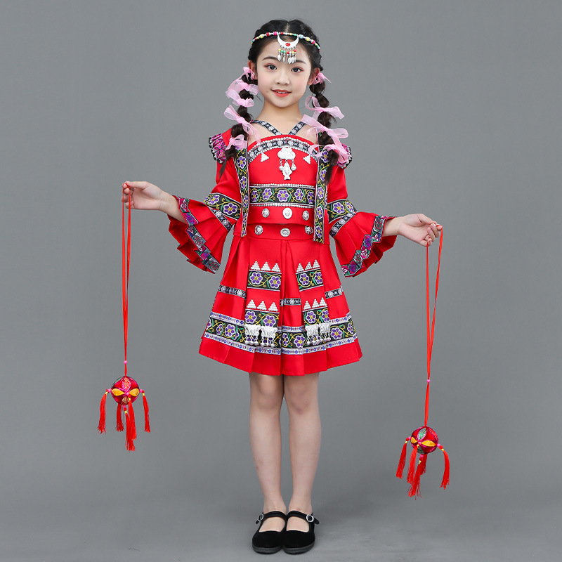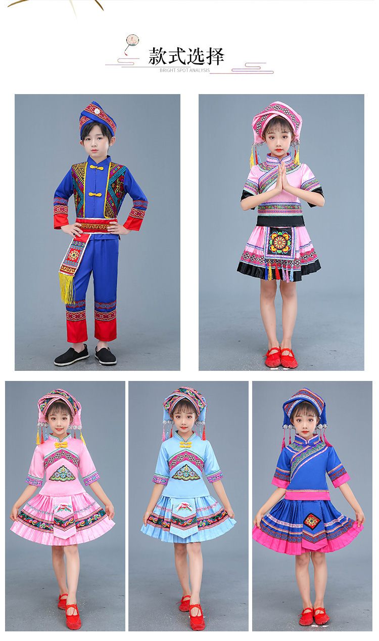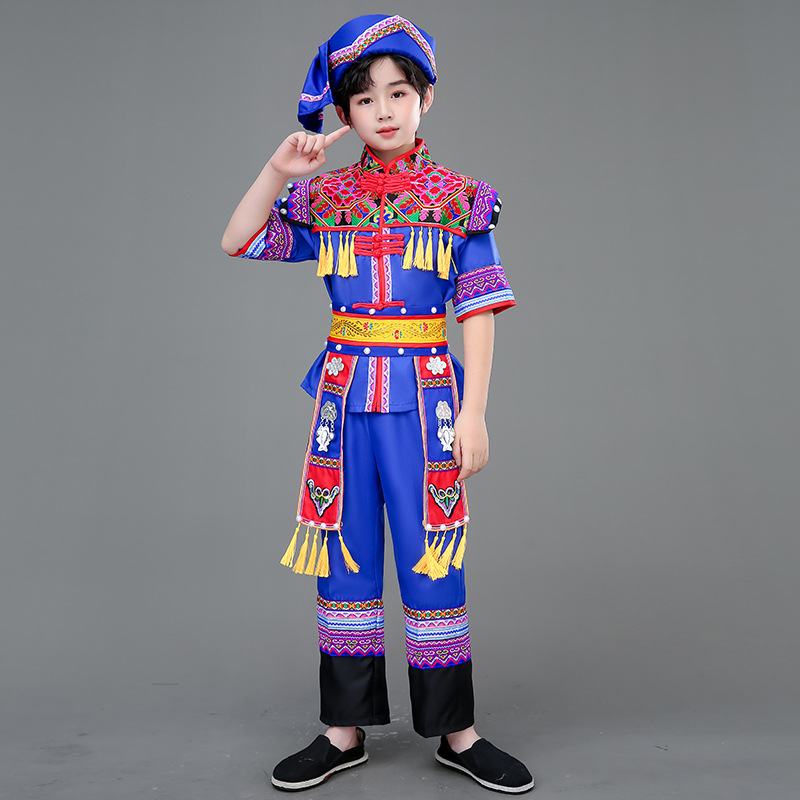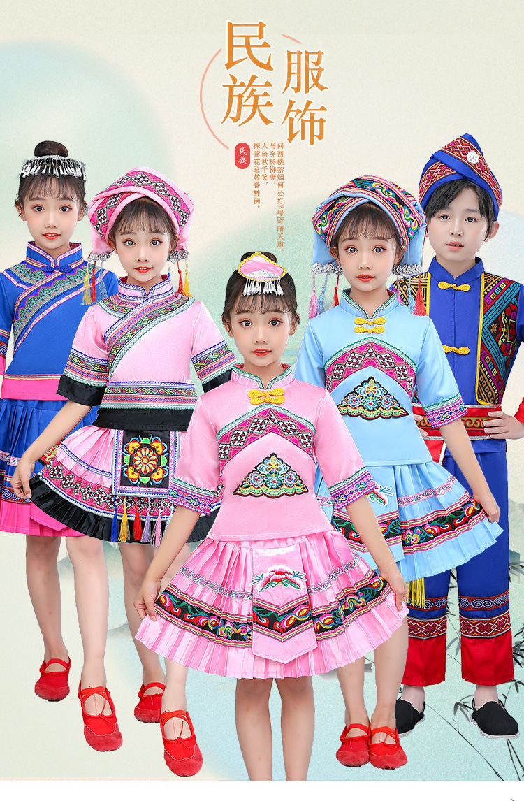 광시 Zhuang 아동복, 3 월 3 일, 새로운 소년 소녀 유치원 공연 의류 Miao Yi Yi Yi Qiang