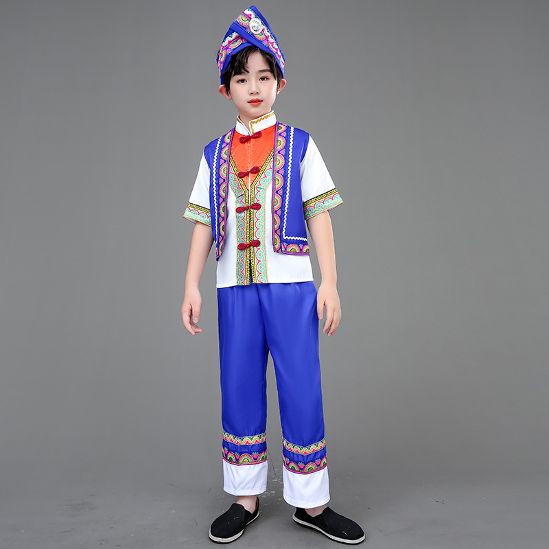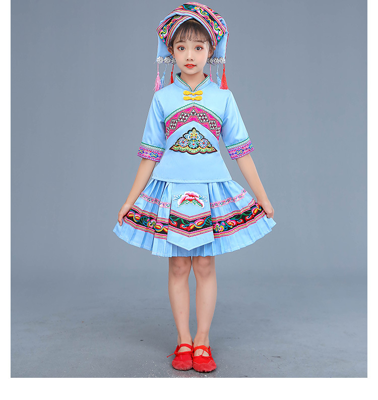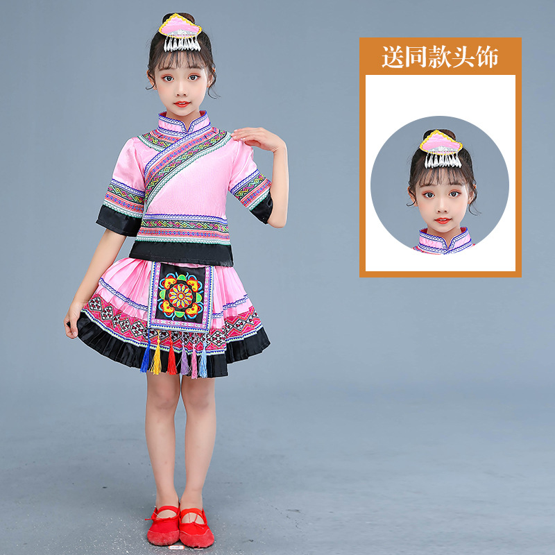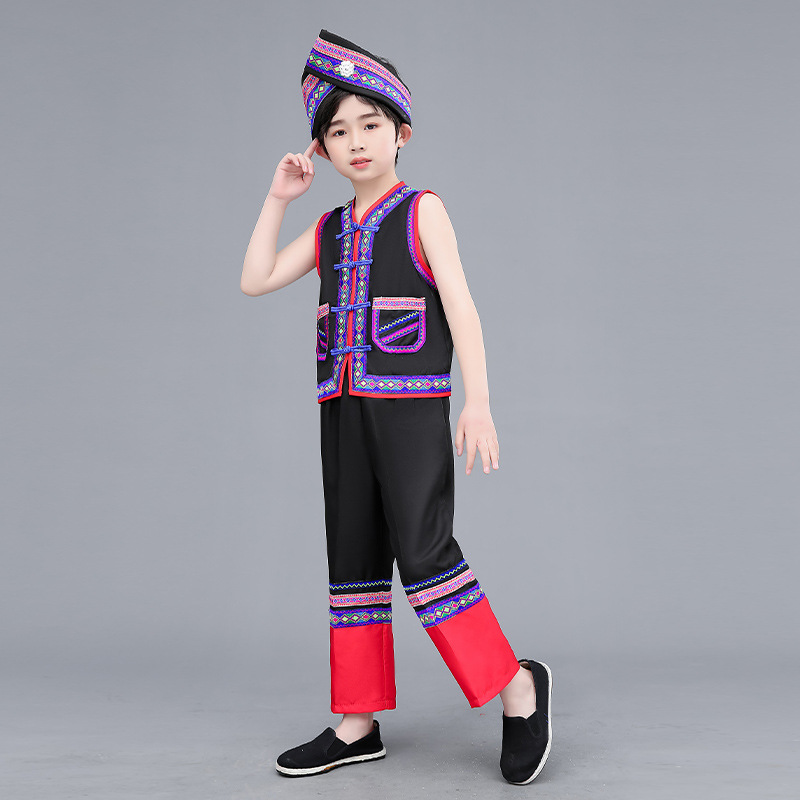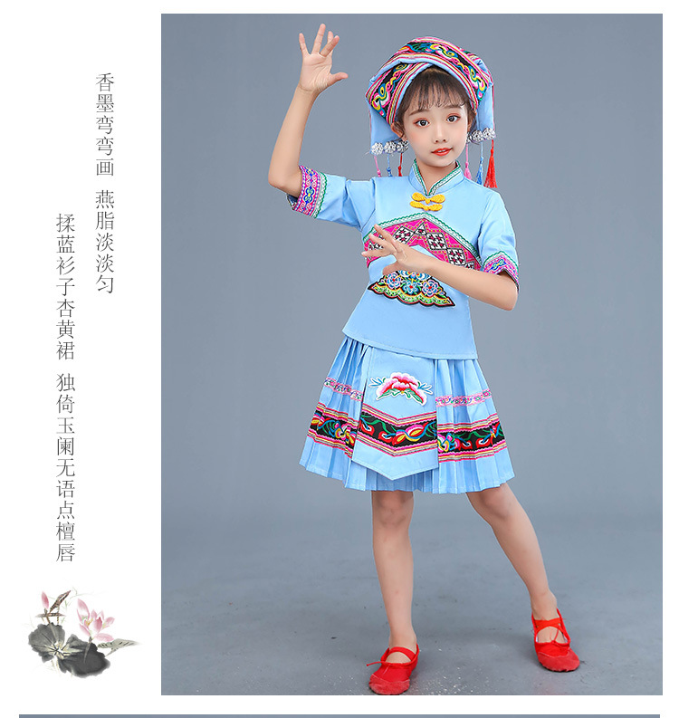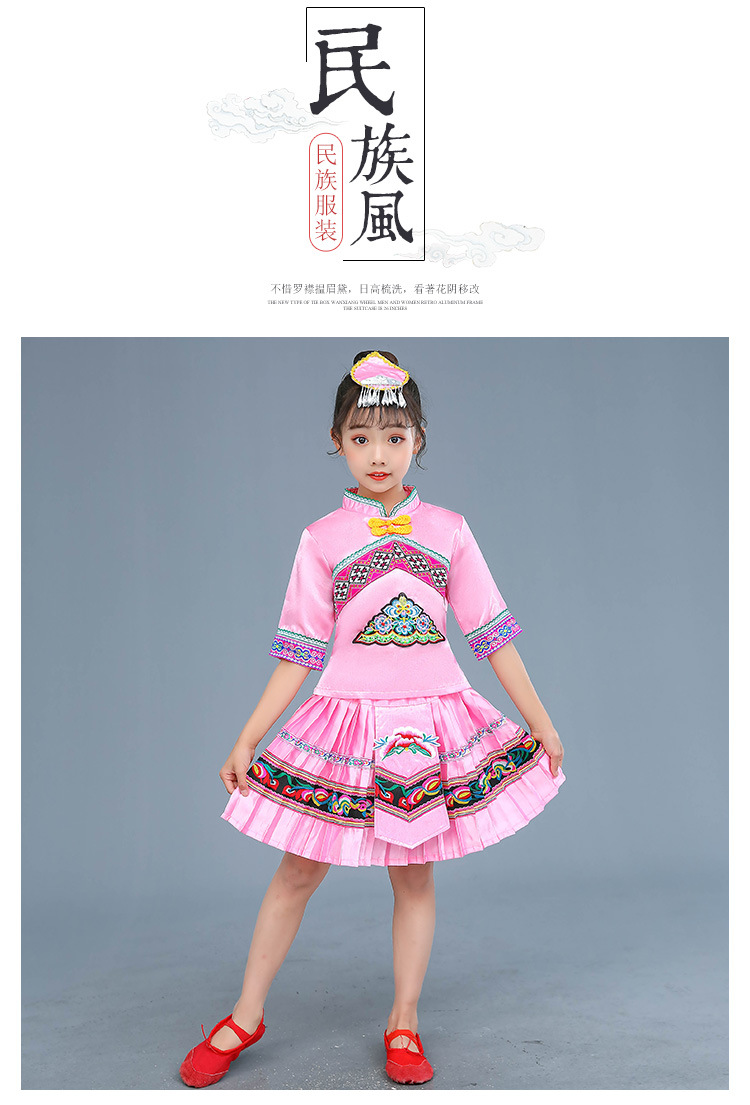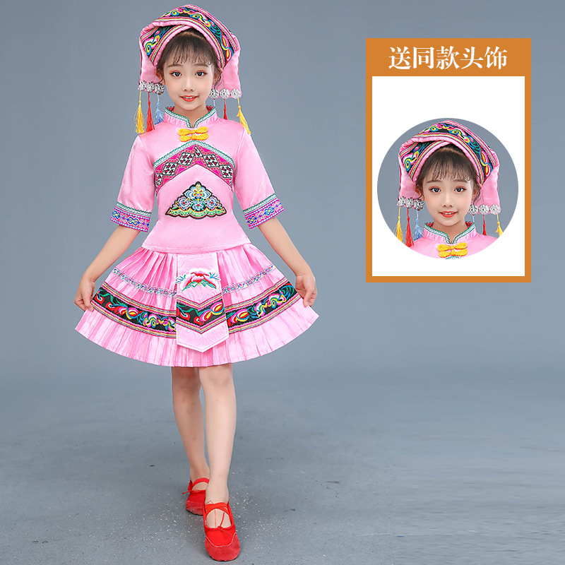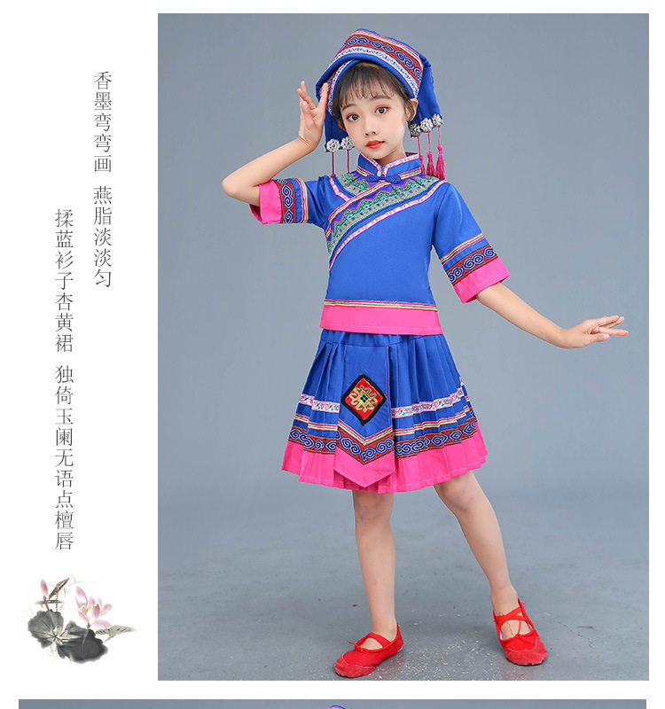 광시 Zhuang 아동복, 3 월 3 일, 새로운 소년 소녀 유치원 공연 의류 Miao Yi Yi Yi Qiang
