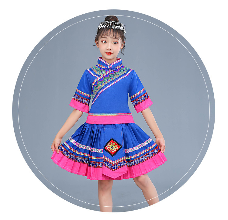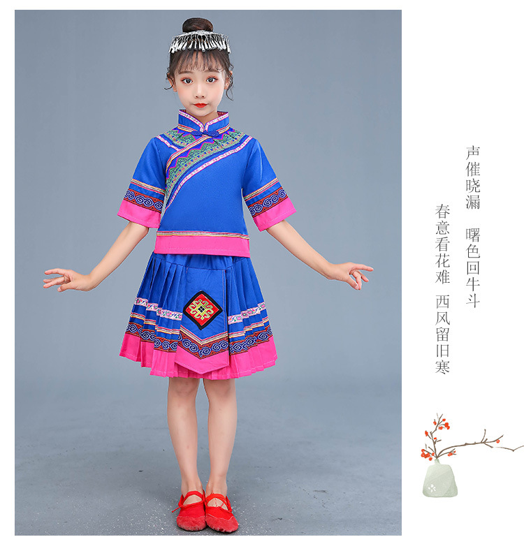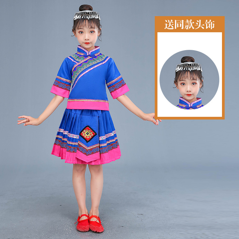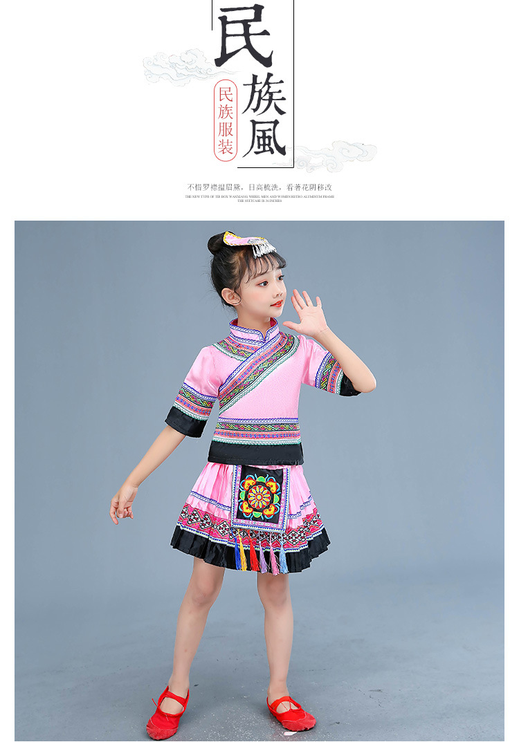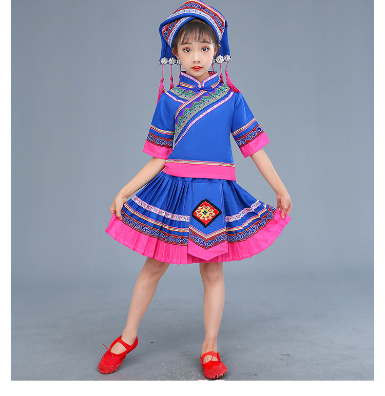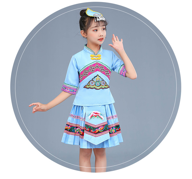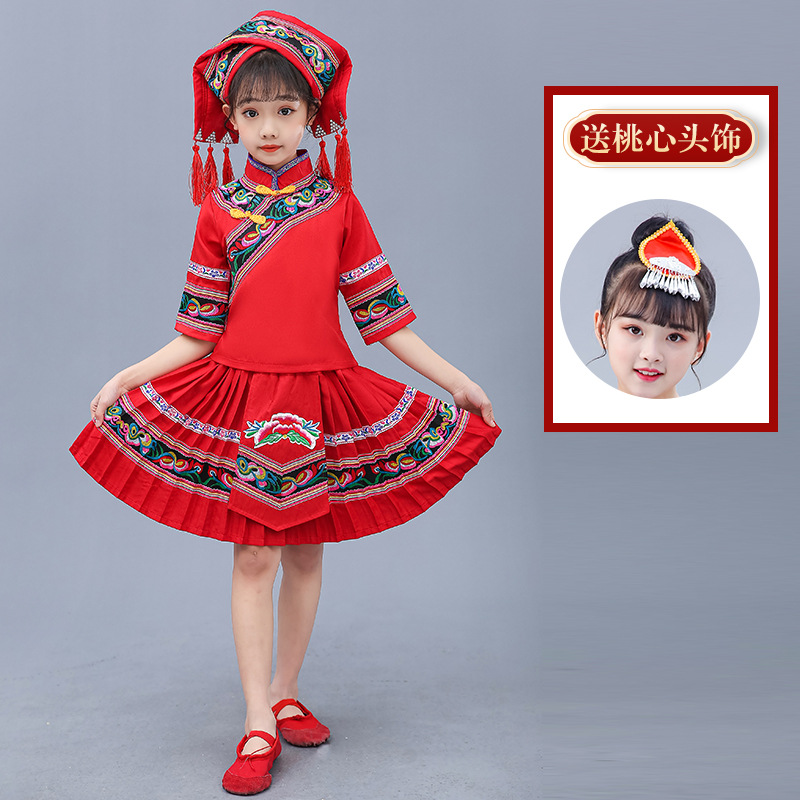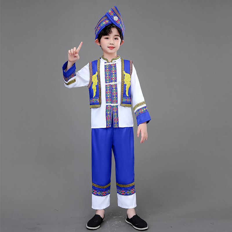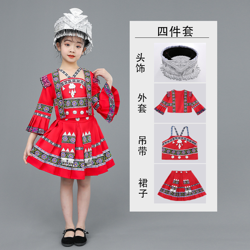 광시 Zhuang 아동복, 3 월 3 일, 새로운 소년 소녀 유치원 공연 의류 Miao Yi Yi Yi Qiang